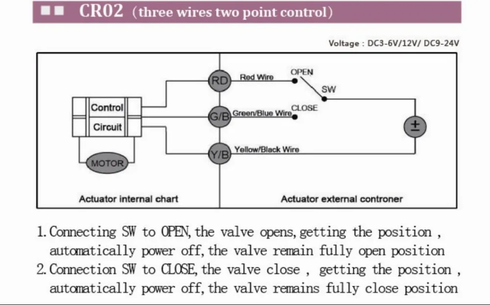 Макс. 1,5 Нм <3s DN8-DN20 CWX-15N Макс. 2,0 нм <5s DN8-DN25 Рабочее давление Мощность Средняя температура Режим управления Класс IP Специальная функция Максимум 1,0 МПа <3 Вт 0-90 ℃ CR01 CR02 CR02 + CR03 CR03A CR04 CR05 IP65 Возможно изготовление на заказ с индикатором положения