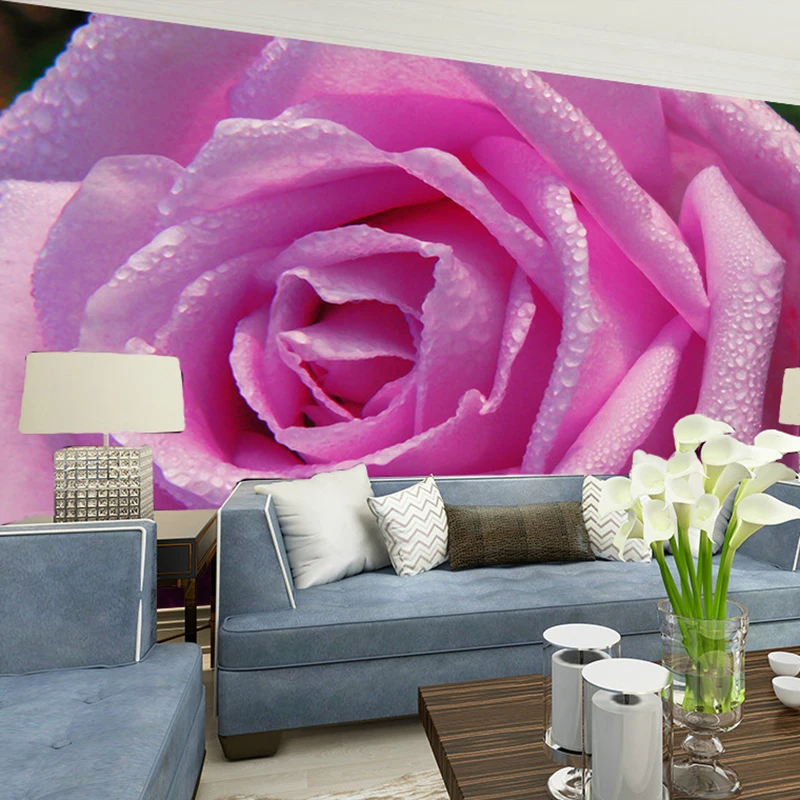 HD фотообои с розовыми розами в форме капли воды, 3D настенная роспись, романтический декор, Свадебный дом, гостиная, обои теплых оттенков Papel De Parede 3D