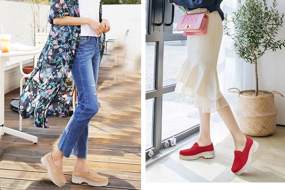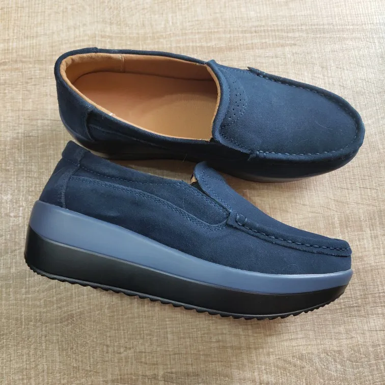 Мокасины EOFK женские ортопедические, натуральная кожа, плоская платформа, удобные лоферы, на танкетке, без застежки, повседневная обувь на весну-осень