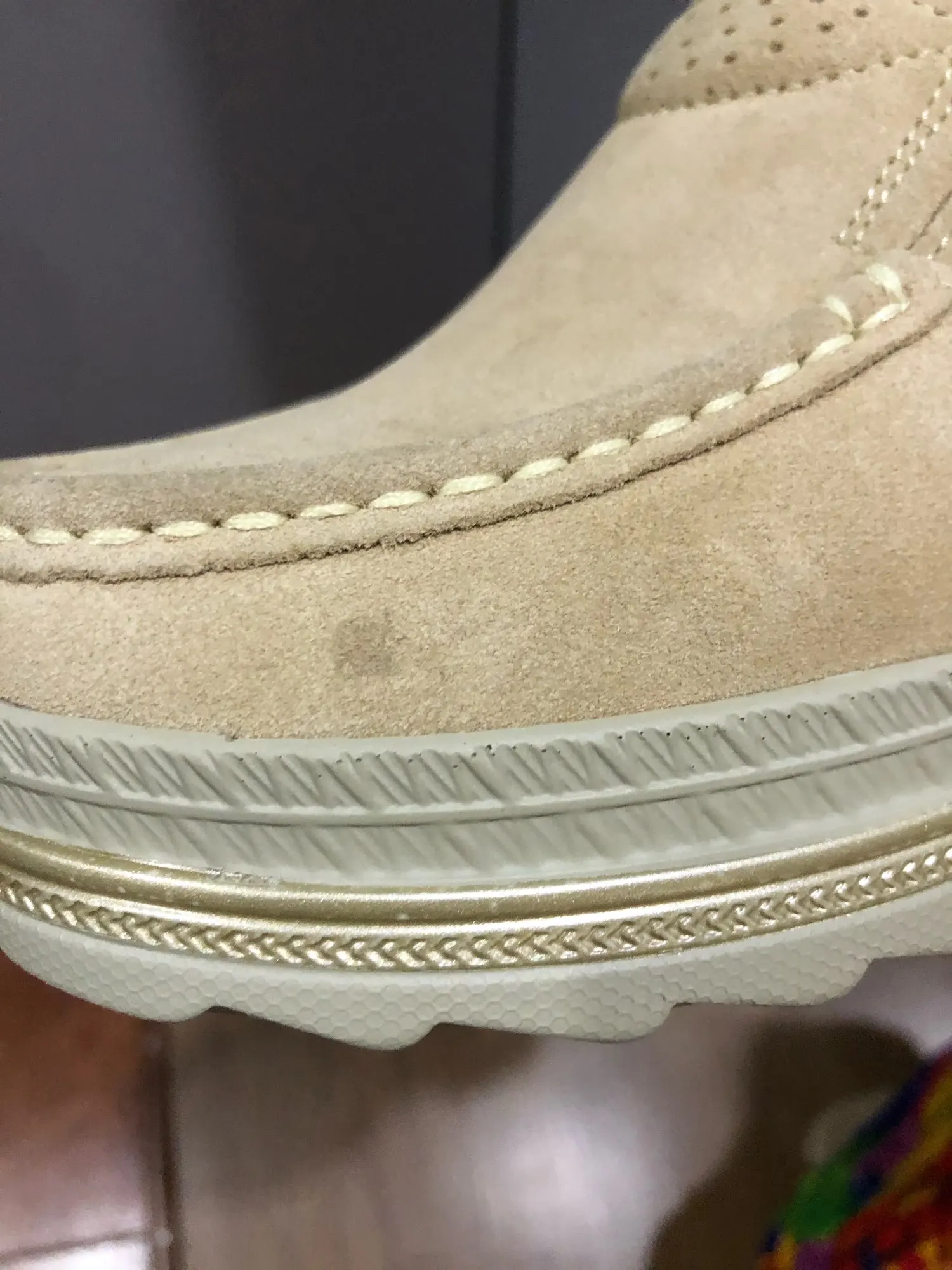 Очень хорошая обувь, того же цвета и качества, только они были слишком большими для меня, измерения не соответствуют тому, что указано в таблице размеров.