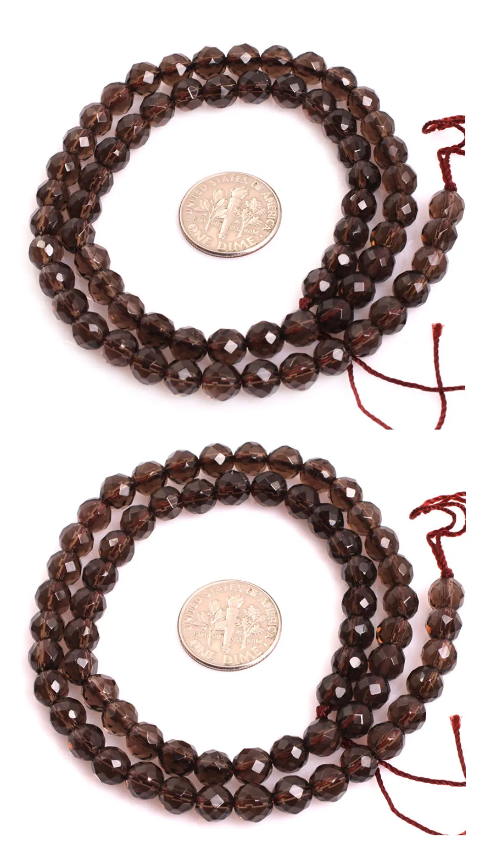 Круглые бусины с гранями класса ААА из светло-коричневого дымчатого...