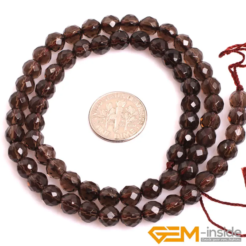 Бусины из темно-коричневого дымчатого кварца класса ААА, с гранями, размер от 4 до 14 мм, бисер сделай сам из натурального камня для изготовления ювелирных изделий
