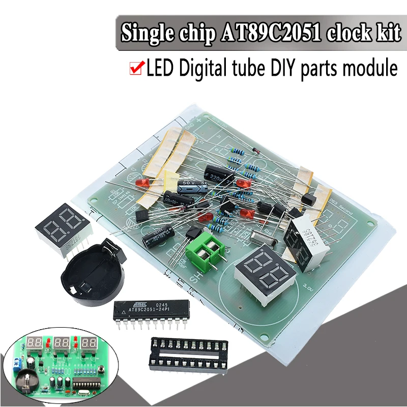 Наборы для самостоятельной сборки AT89C2051, электронные часы, цифровая трубка, светодиодный дисплей, набор электронных модулей, детали и компоненты, постоянный ток 9 В-12 в