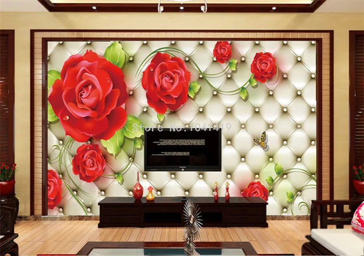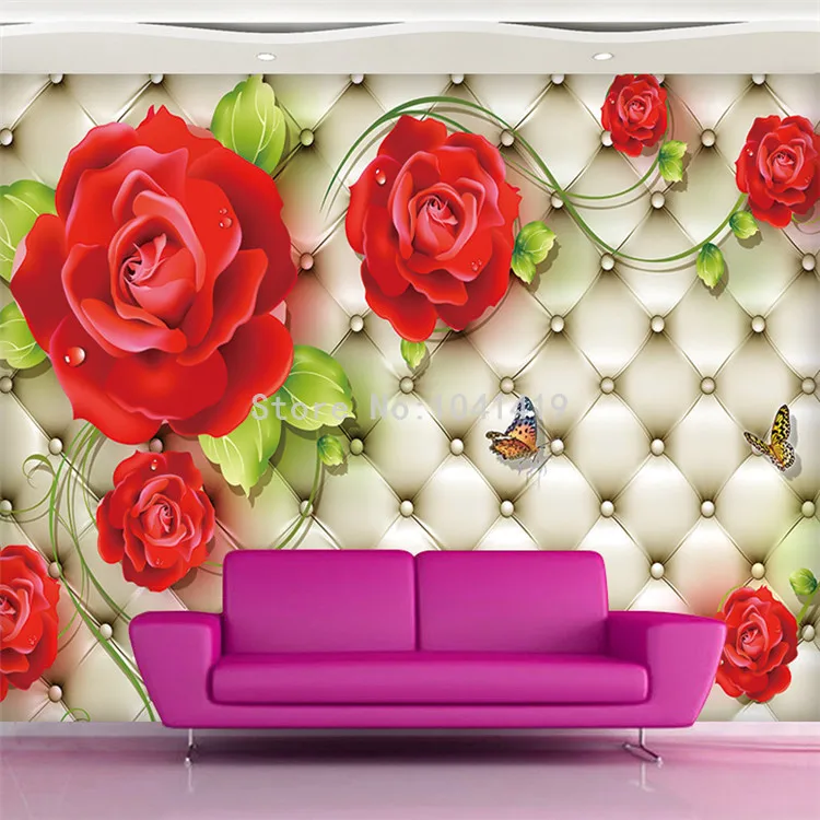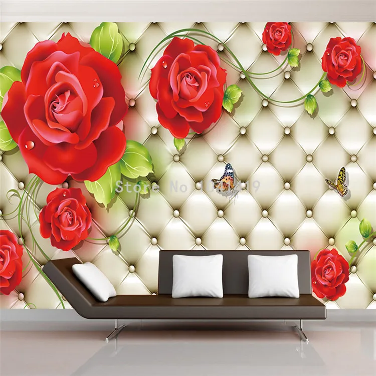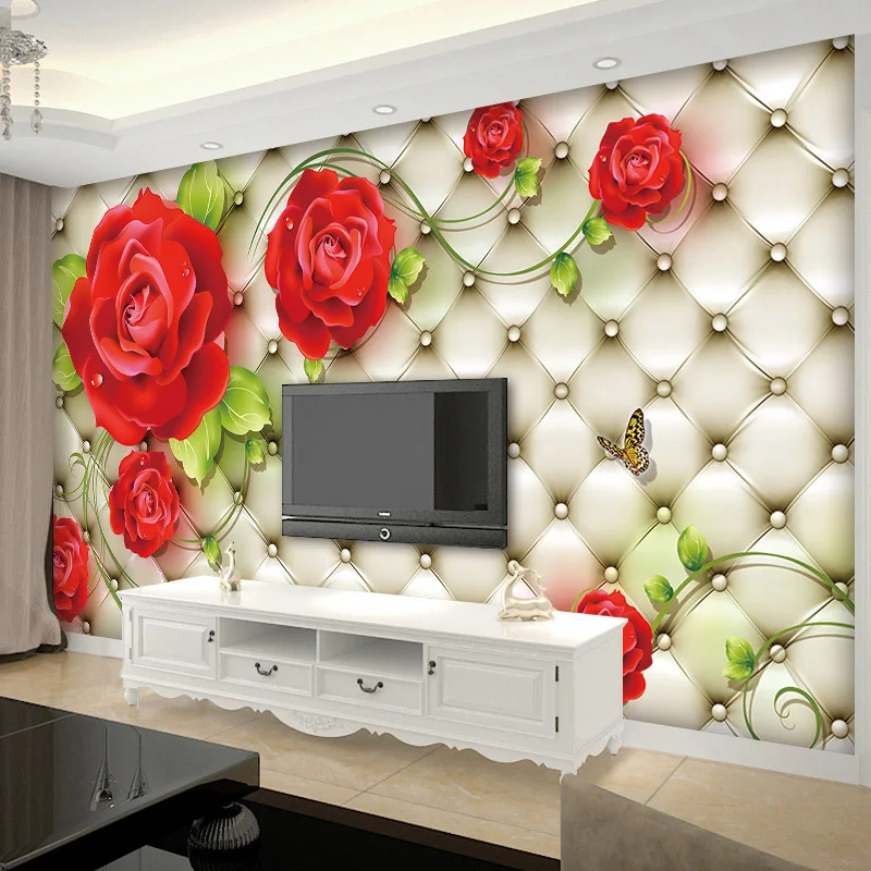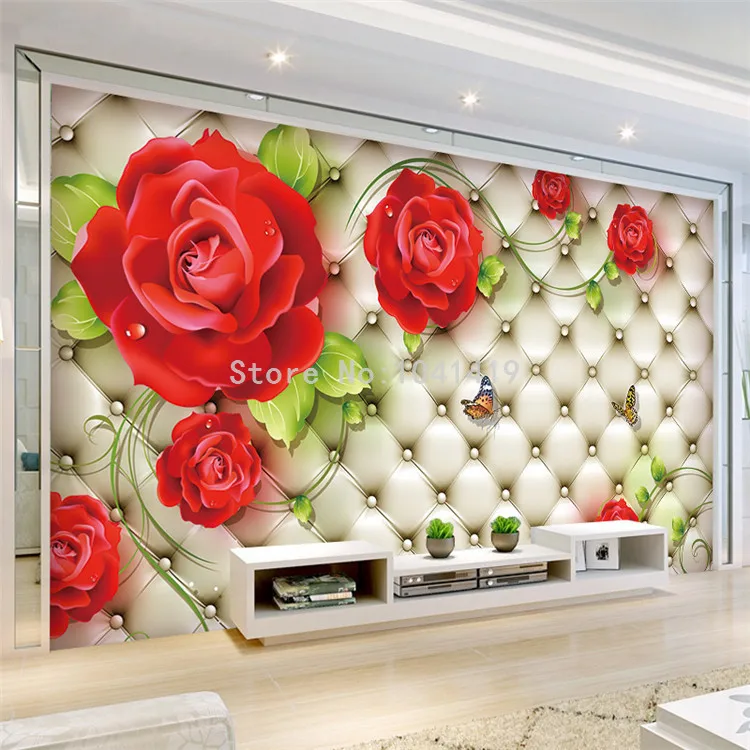 Пользовательские Классические фото обои 3D тисненые мягкая упаковка красная роза красивые цветы росписи гостиной Свадебный дом домашний декор Фреска