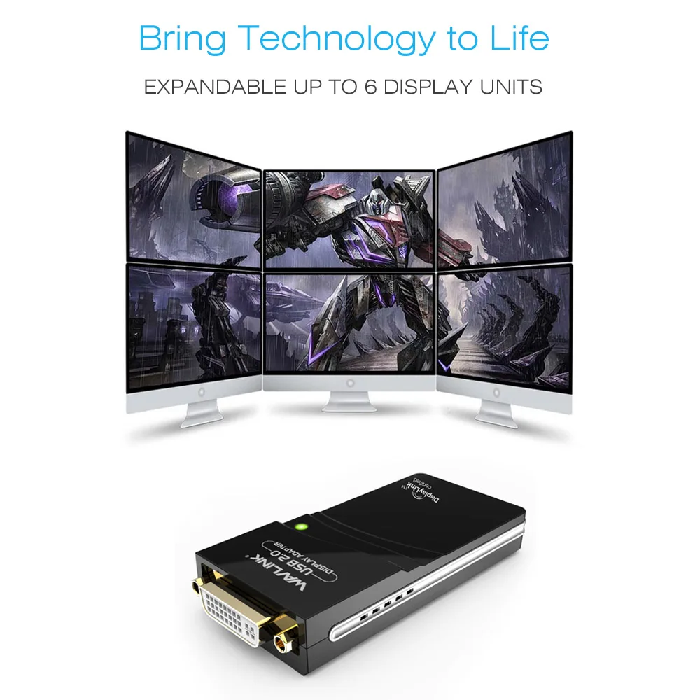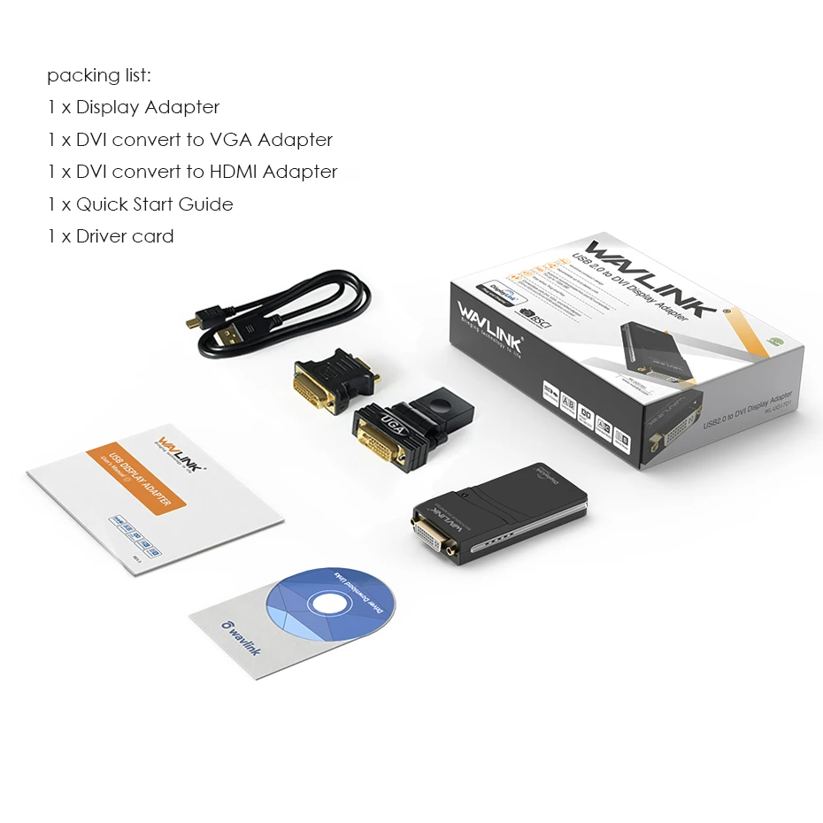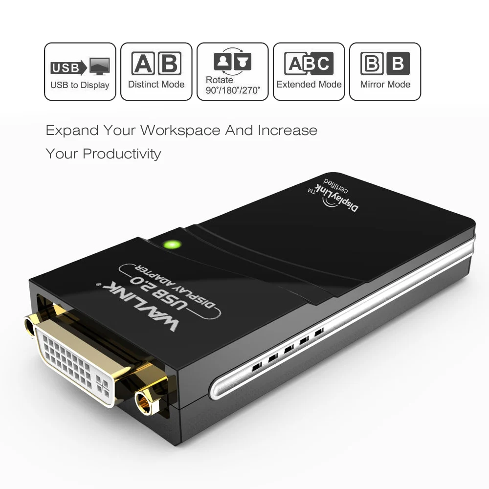 Wavlink USB2.0 для VGA/DVI/HDMI видео графика/дисплей адаптер, ноутбук внешняя видеокарта для нескольких мониторов дисплей до 1920 × 1080 пикселей с расширенным и зеркальным режимом для Windows 10/8.1/8/7