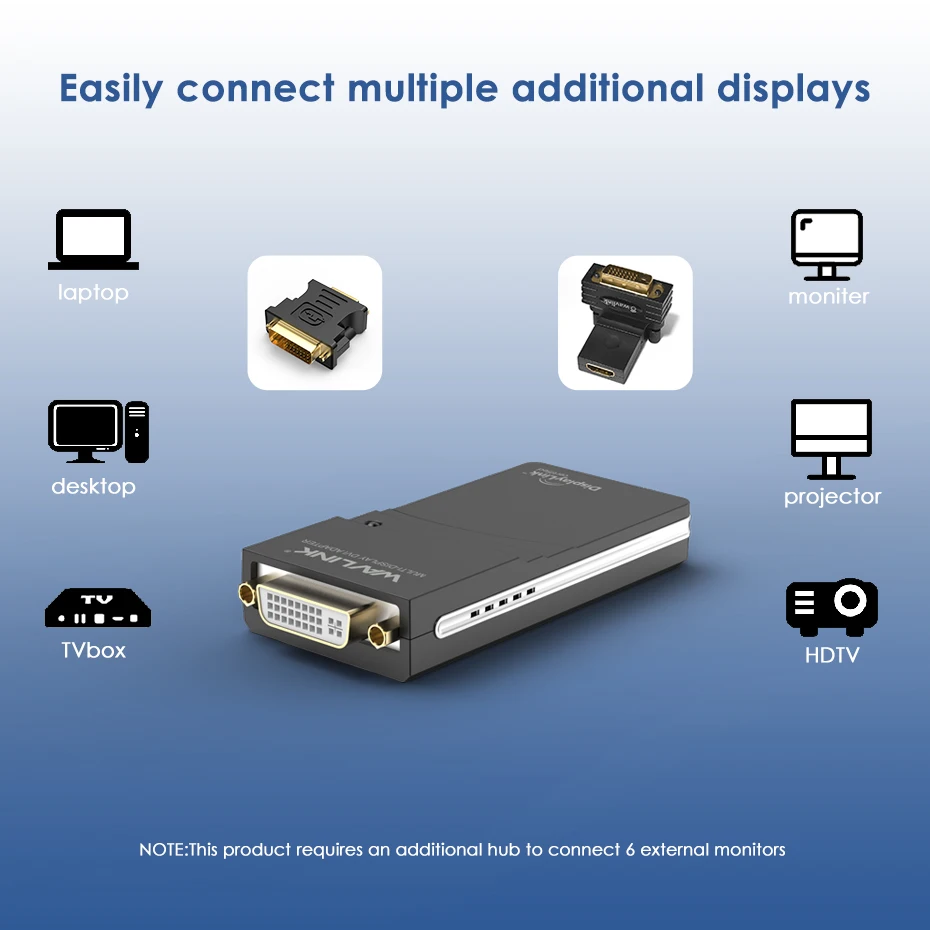 Добавьте несколько дисплеев к настольному ПК без хлопот, открыв корпус и добавив дорогие дискретные графические карты. Используйте его для подключения телевизора или проектора HD к ноутбуку, Macbook или ультрабуку. После установки экран компьютера отображается на дополнительных мониторах без проблем с функциональными клавишами для замены на второй монитор.