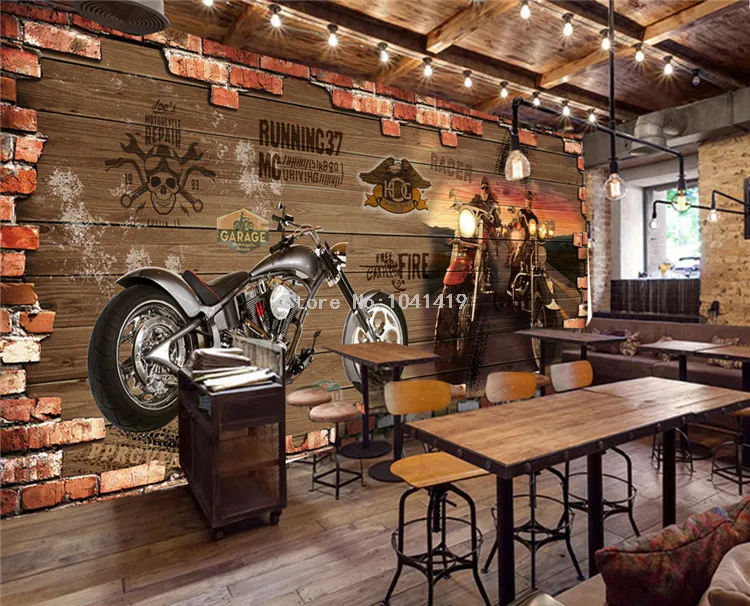 Индивидуальная Настройка ретро мотоцикл кирпич обои Ресторан Кафе креативный Декор 3D рельефная роспись Papel De Parede 3 D