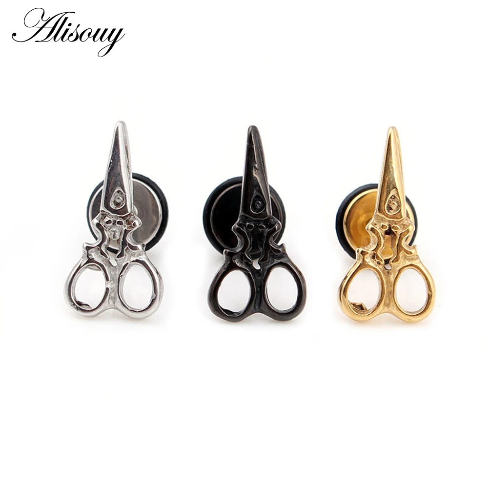 Alisouy 2 шт. одна пара литые винтажные Ретро ножницы из нержавеющей стали для мужчин и женщин серьги-гвоздики для ушей