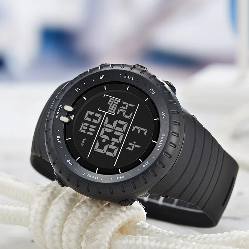 Часы наручные мужские цифровые, модные светодиодные водонепроницаемые в стиле милитари с силиконовым ремешком