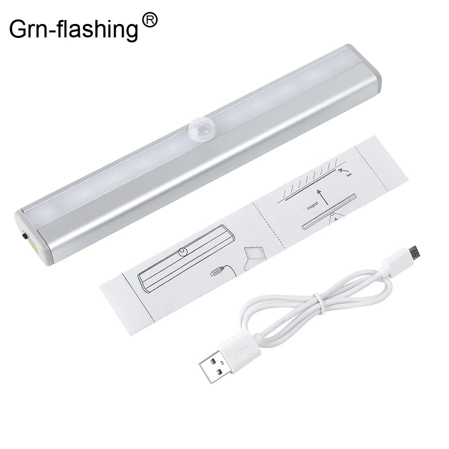Светильник с 10 светодиодами и датчиком движения, ночник с зарядкой...