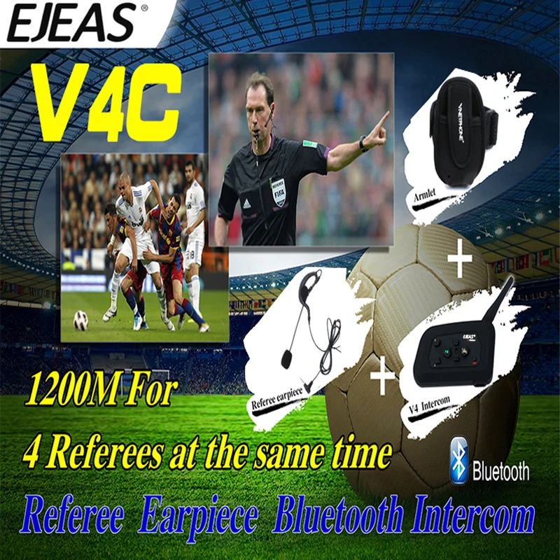 В комплект входят гарнитура referee и домофон EJEAS V4C, гарнитура очень хорошо работает с внутренней связью. Рефери могут четко слышать звук, даже если surrouding шумит, V4C помогает рефери говорить в диапазоне 1200 м, ориентируйтесь на футбольное поле.