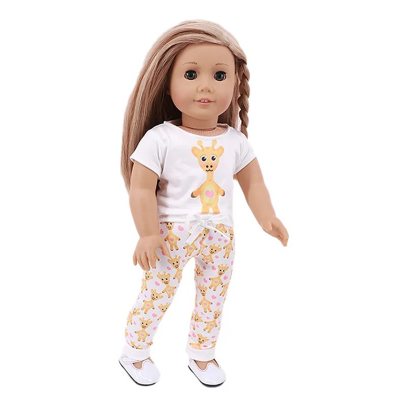 Одежда для кукол, 2 шт.компл., мультяшная ночная рубашка, подходит для 18-дюймовой американской куклы для девочек 43 см