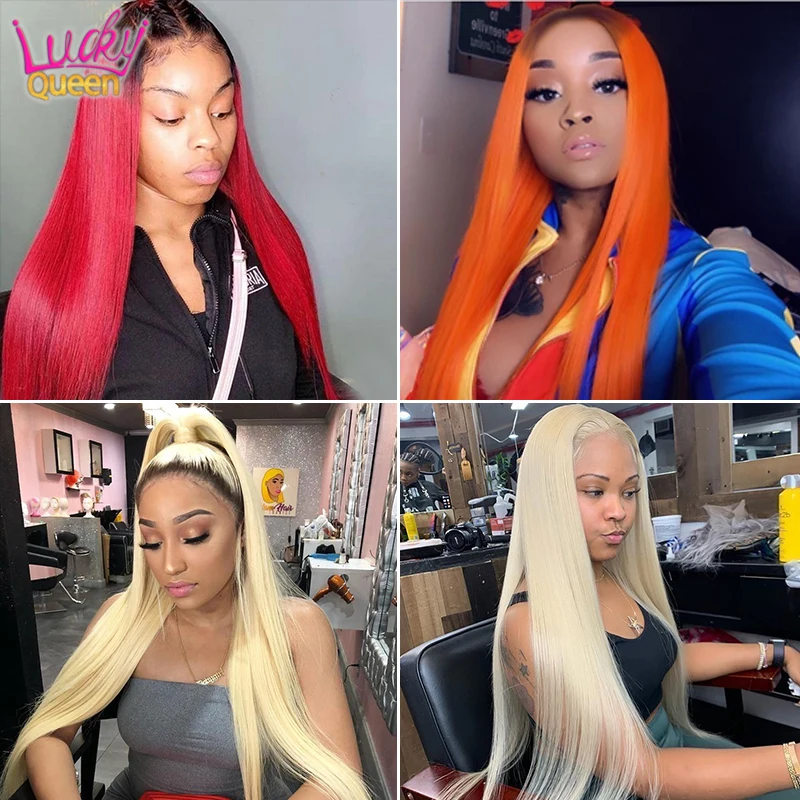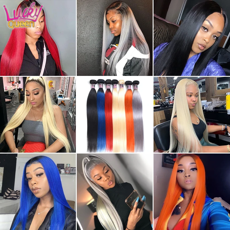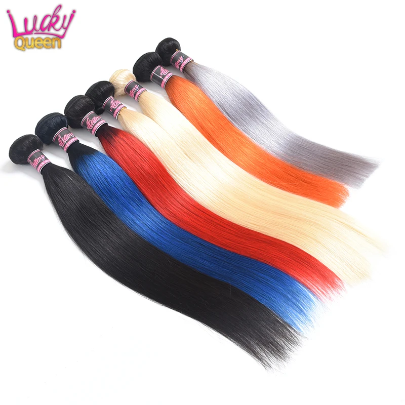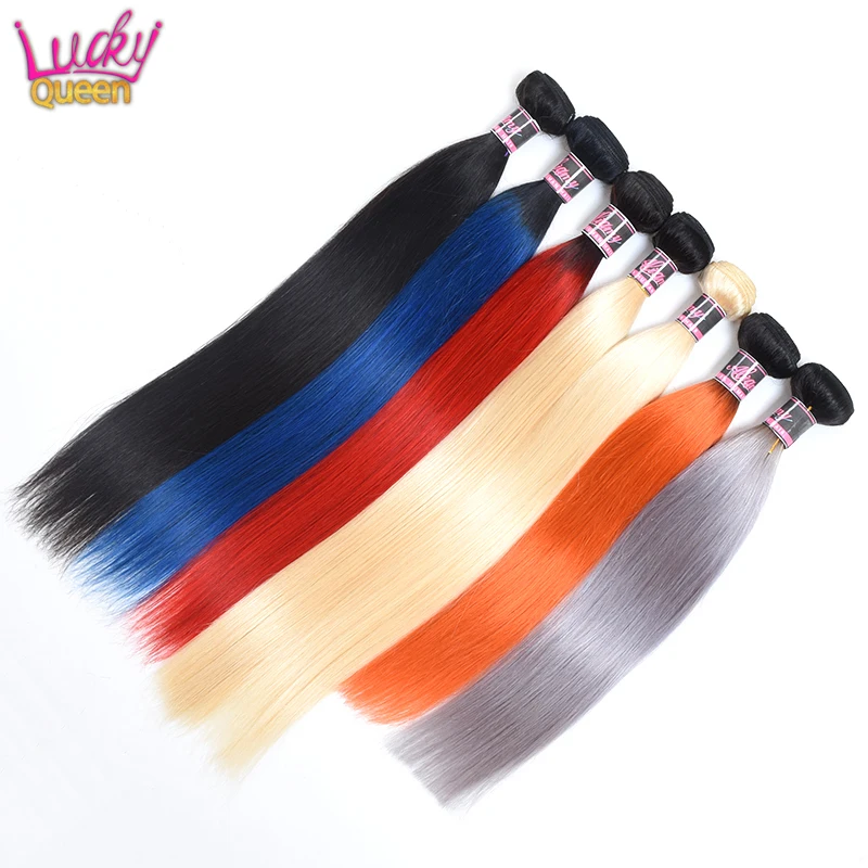 Прямые перуанские волосы Lucky Queen, пряди 30 дюймов, человеческие волосы Remy для наращивания, 1Bкрасныйсинийсерыйоранжевый613 блонд