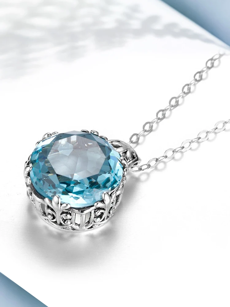 Женский кулон из серебра аквамариновое ожерелье пробы Szjinao, винтажный кулон из серебра 925 пробы с драгоценным камнем, подарок