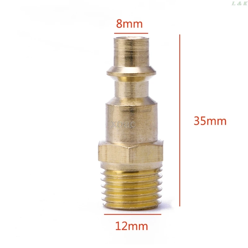 Материал: латунь Цвет: Золотой Характеристика: 1/4 BSP Золотой Континентальный мужской Быстрый разъем. Прочность на сжатие, коррозионная стойкость, высокая производительность и высокая надежность. Быстрая и простая установка, не требует каких-либо инструментов. Характеристики: Название продукта: коннектор компрессора Размер: прибл. 35x12x 8 мм/1,37 "x 0,47" x 0,31"