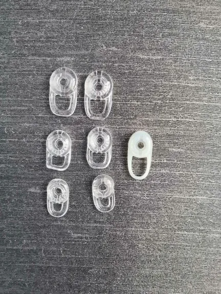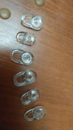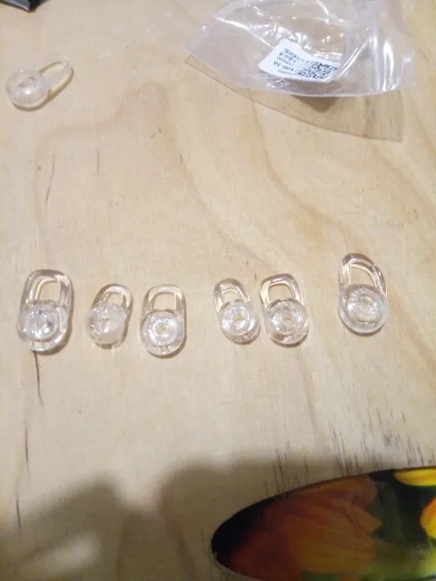 Все на вид в хорошем состоянии. Не слипшиеся, как до этого читал в комментарии. Разных размеров. На platronics m70 подошёл один размером немного меньше стандартного (остальные не мерил). В ухе держится хорошо, но при этом не давит. Пока только раз примерил - на первый взгляд удобнее, чем тот что в комплекте с гарнирой шел