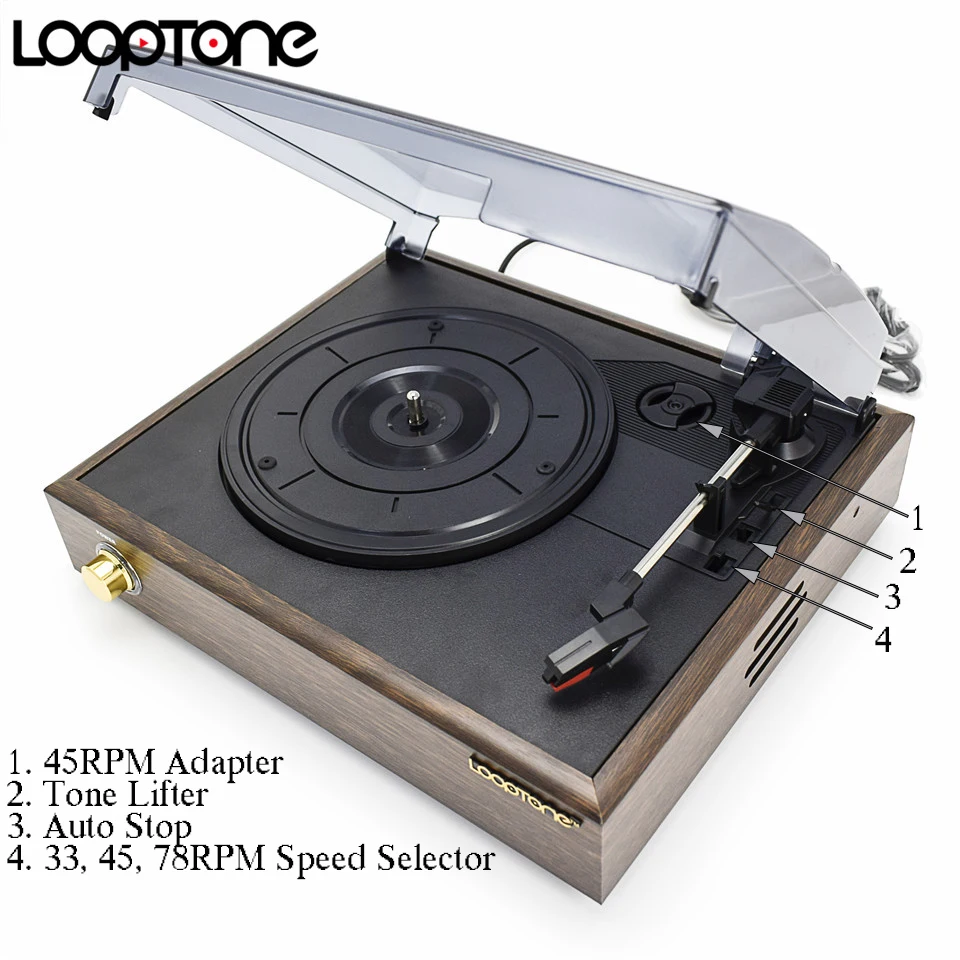 3-скоростной классический граммофон, проигрыватель виниловых пластинок с ременным приводом, с 2 встроенными стереодинамиками