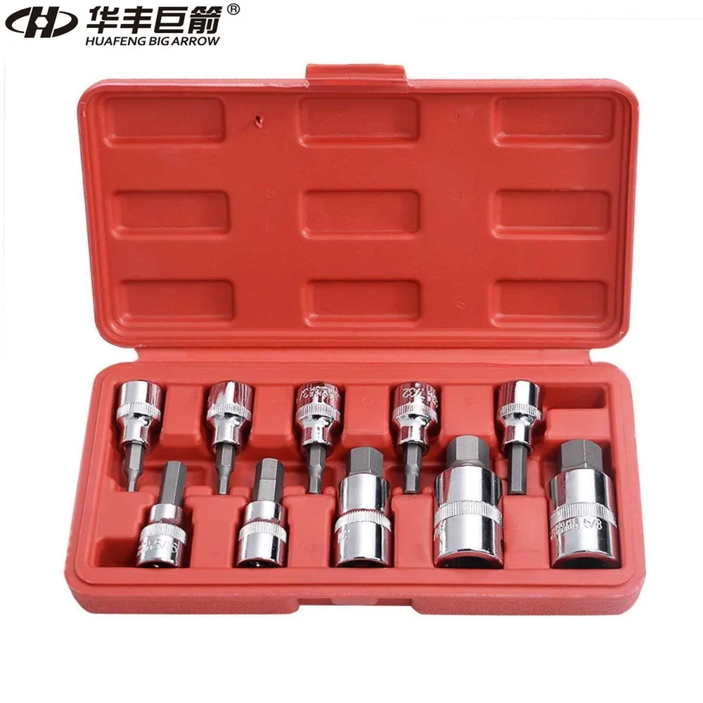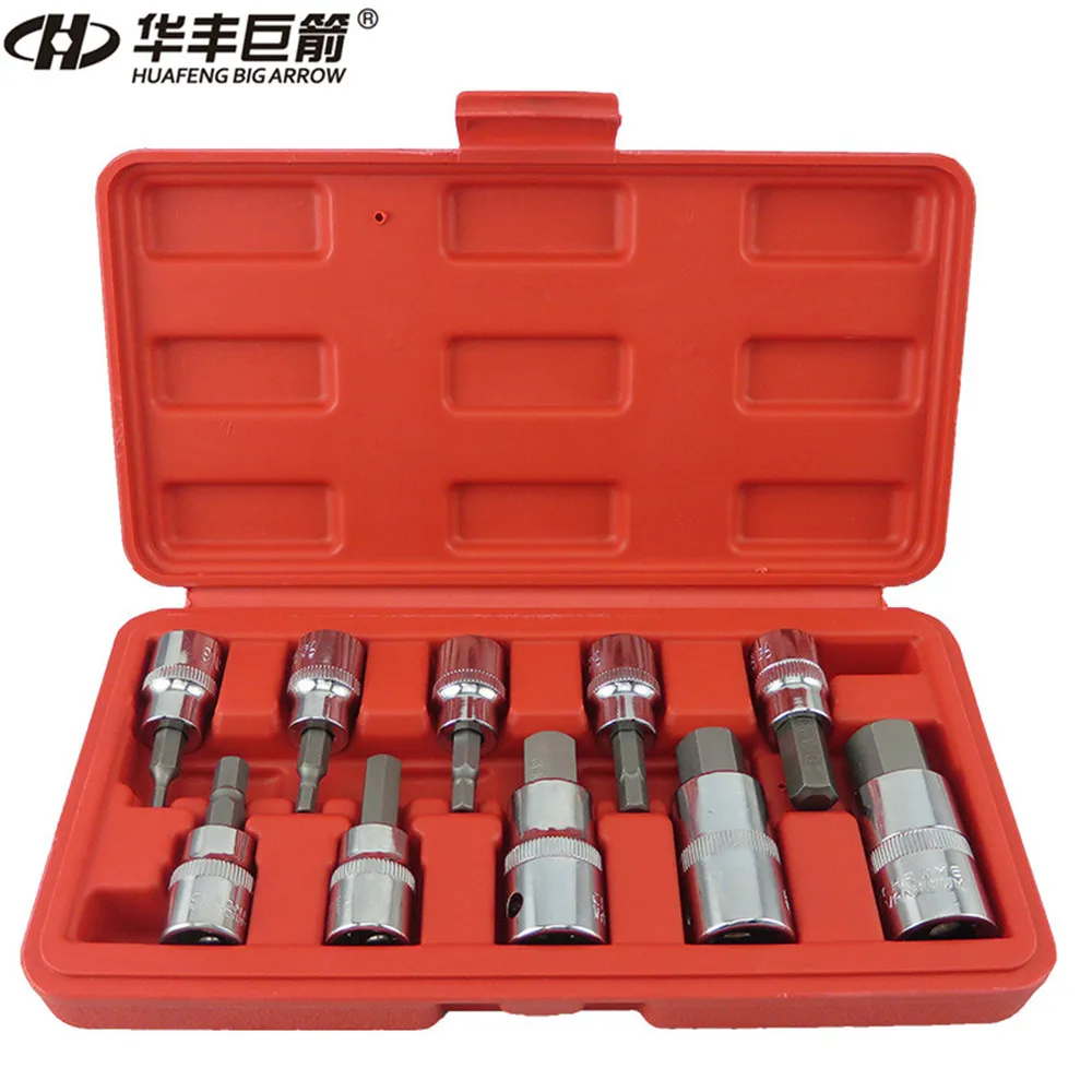 Набор насадок HUAFENG с шестигранной головкой, Набор насадок диаметром 38 дюйма и 12 дюйма, 10 шт.
