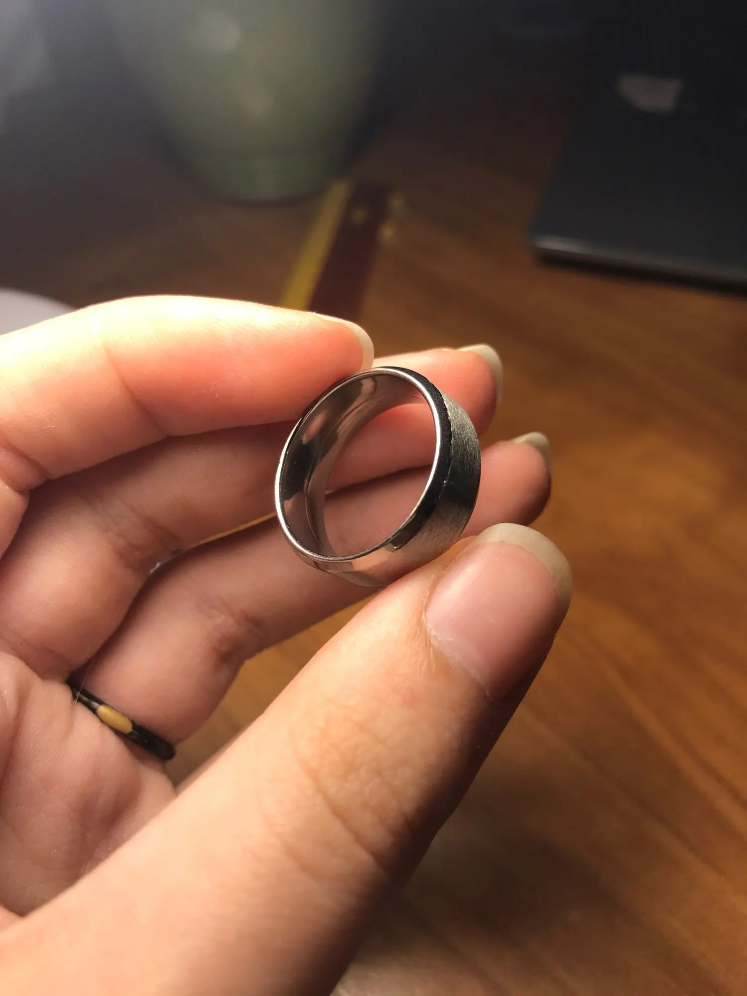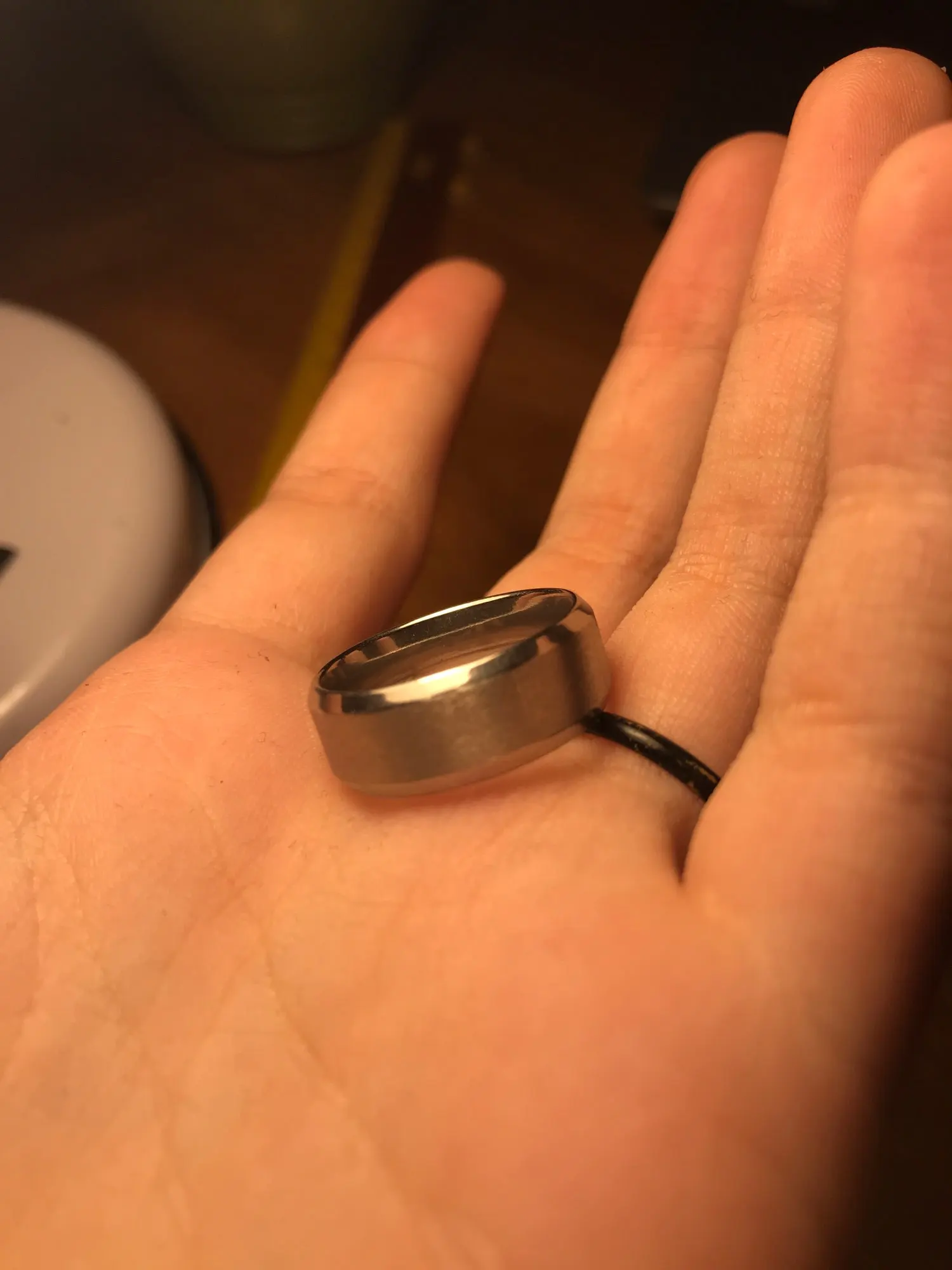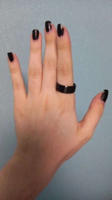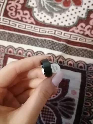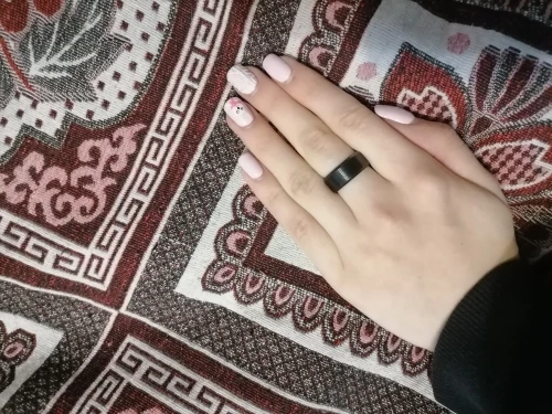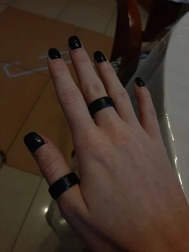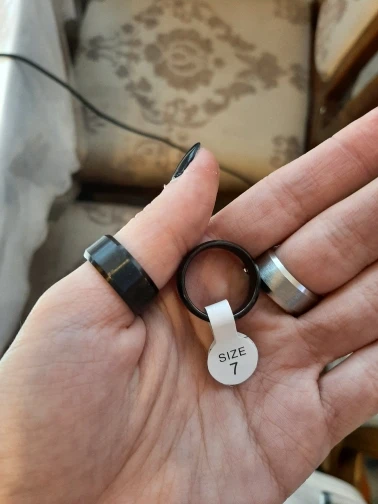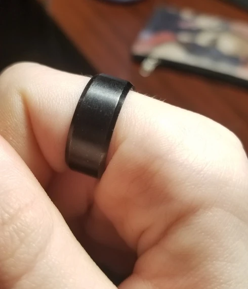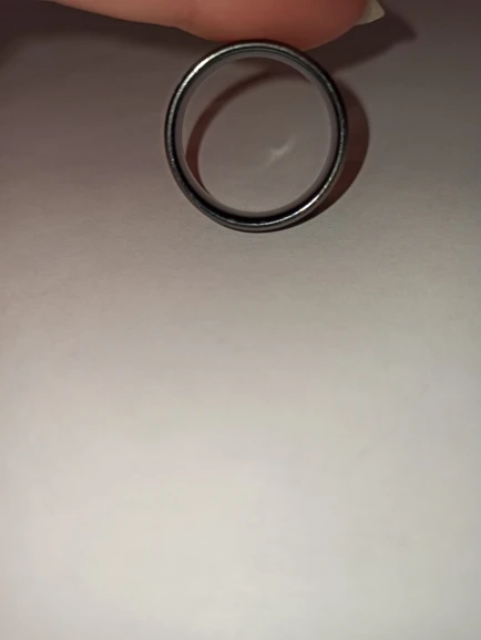 Соответствует описанию. Продавец отправил быстро. На кольце есть потертости, предполагаю, что черный цвет через какое-то время сотрется и будут они серебристого цвета.