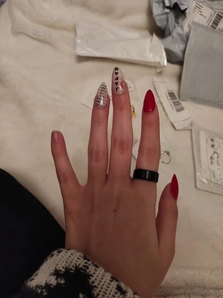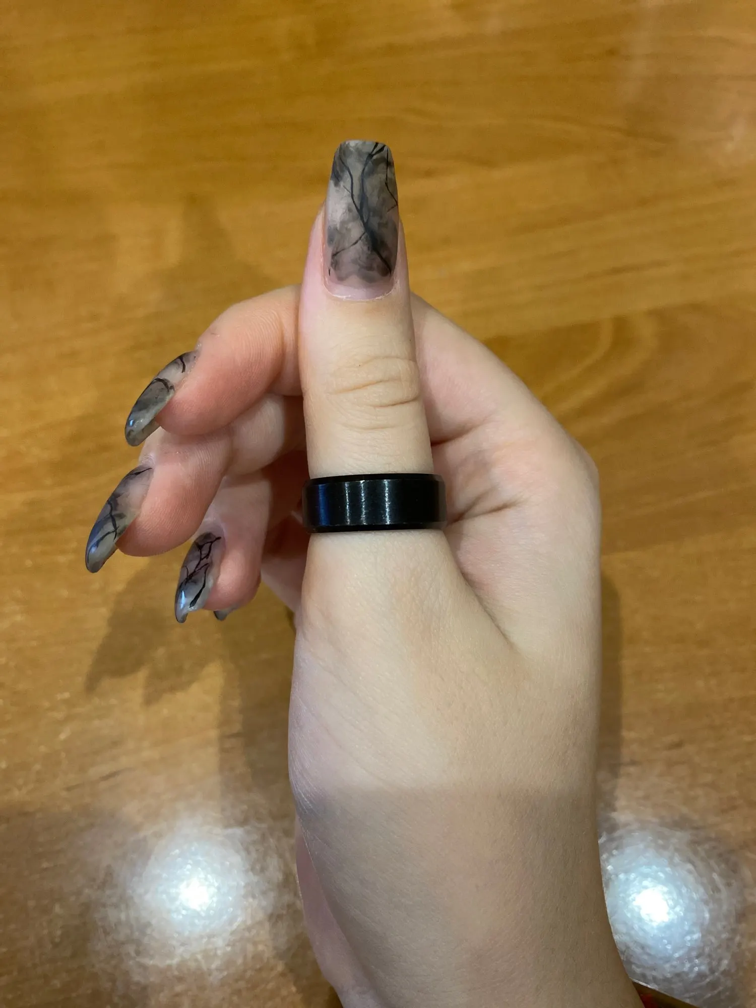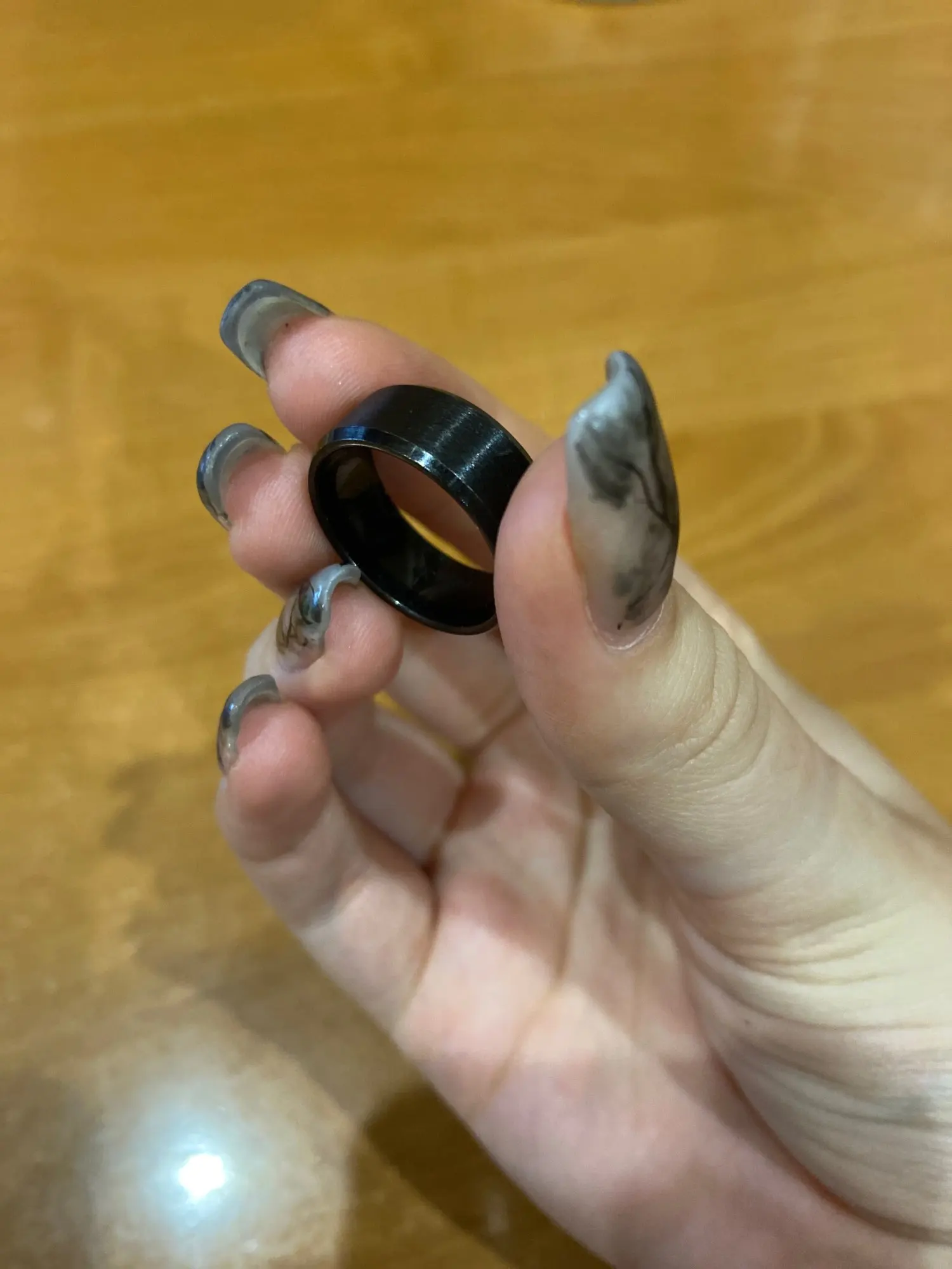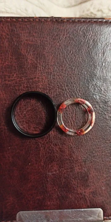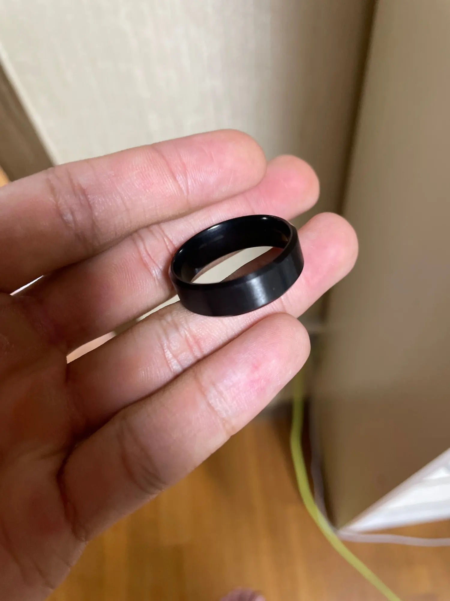 Соответствует описанию. Продавец отправил быстро. На кольце есть потертости, предполагаю, что черный цвет через какое-то время сотрется и будут они серебристого цвета.