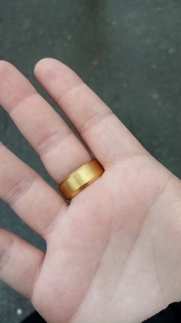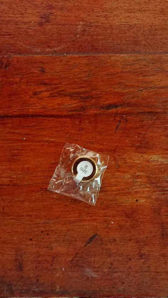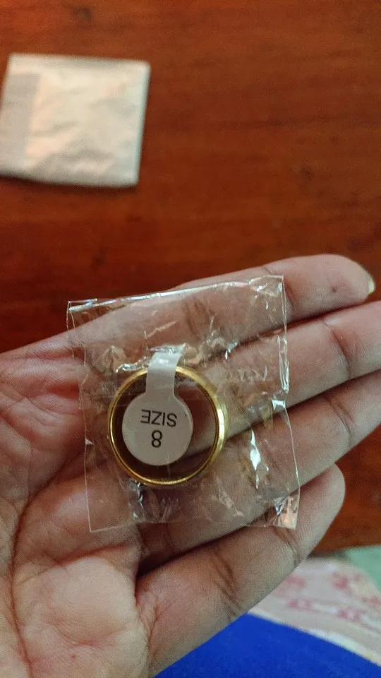 Кольцо хорошего качества. Плохо, я заказал меньший размер, но следующие кольца будут больше. По крайней мере, я могу помыть его на моем маленьком пальце. Я рекомендую товар.