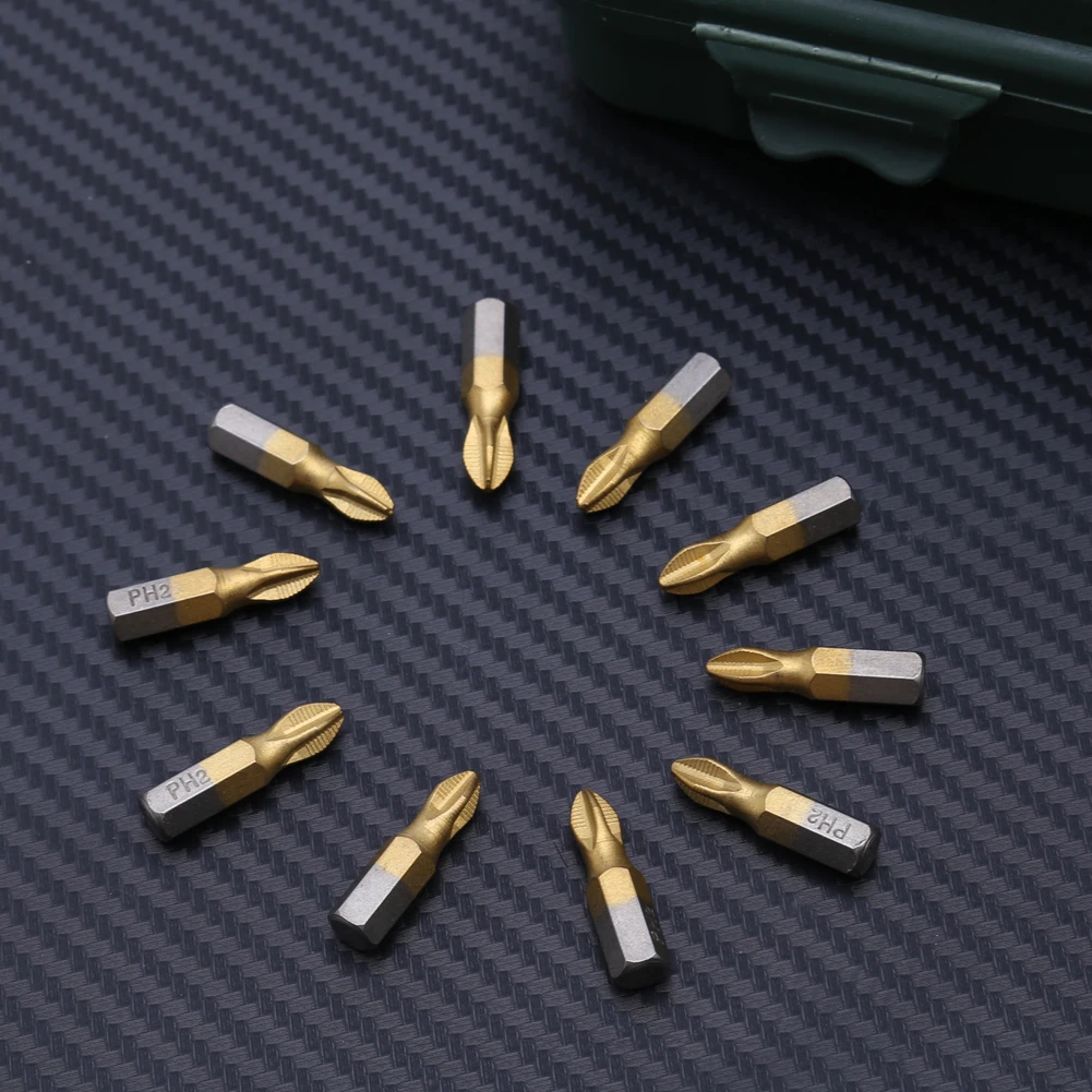 Профессиональные магнитные биты для отверток PH2 с титановым покрытием и шестигранным хвостовиком 10 шт.компл. 14 дюйма, длина 25 мм, ручные инструменты