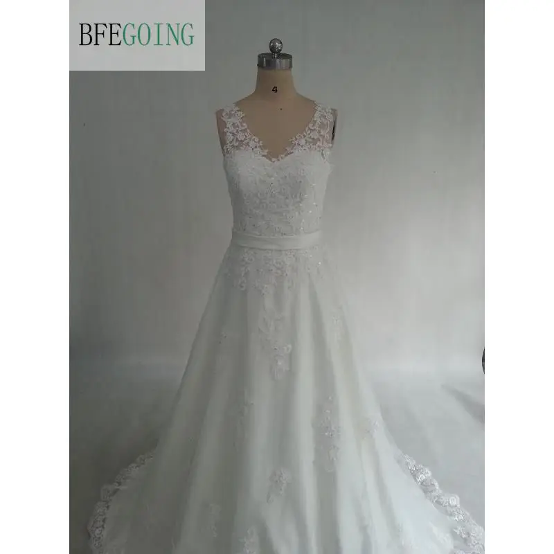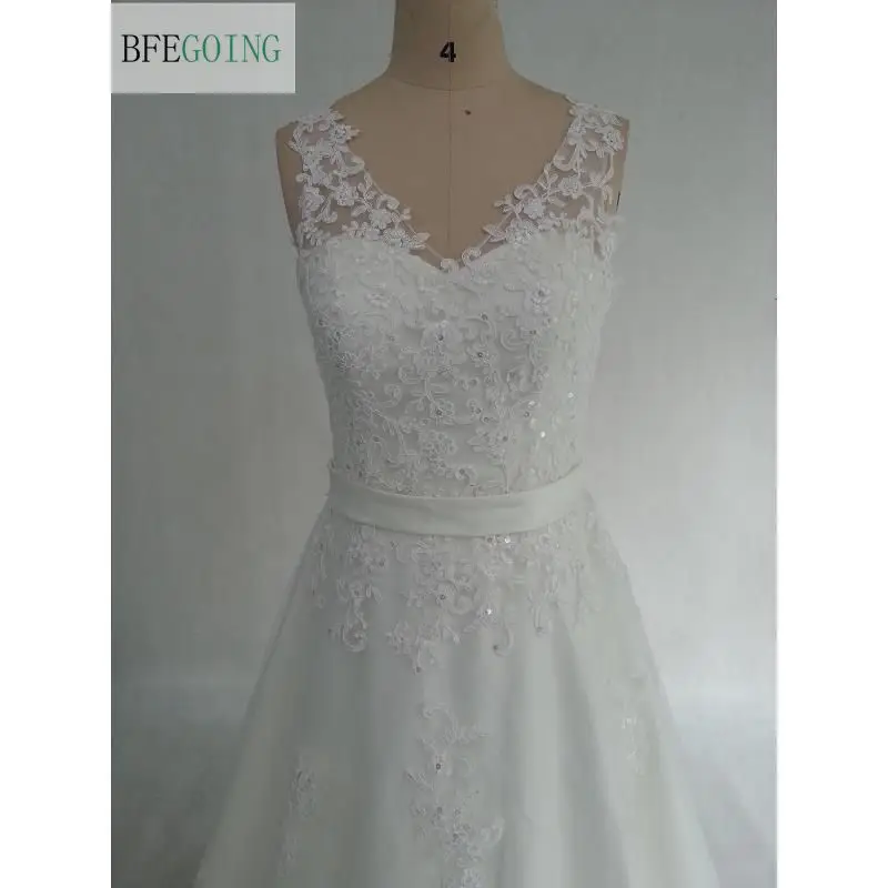 Кружевное Тюлевое платье-трапеция цвета слоновой кости с V-образным вырезом, свадебные платья до пола со шлейфом и поясом, реальныеоригинальные фотографии, индивидуальный пошив