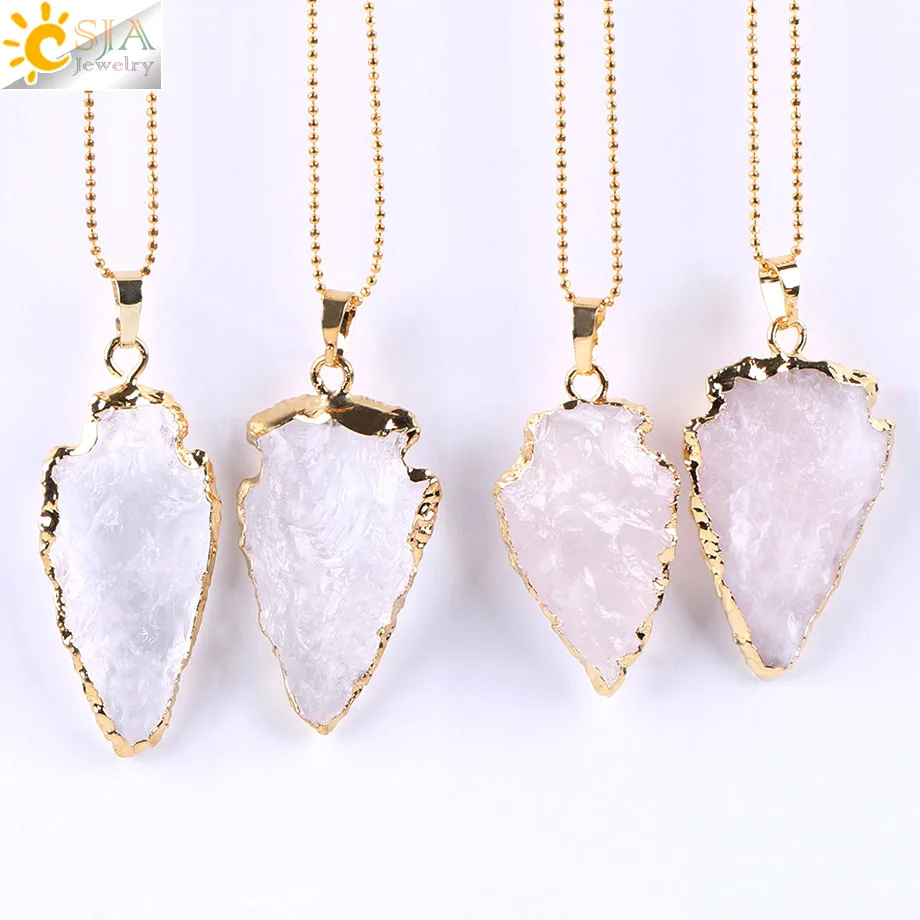 Ожерелья и кулоны CSJA, Натуральный Прозрачный кристаллический кварц наконечник стрелы, розовый, белый камень, драгоценный камень, золотой цвет, унисекс, ювелирные изделия рейки E635