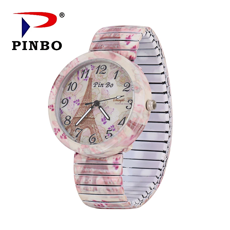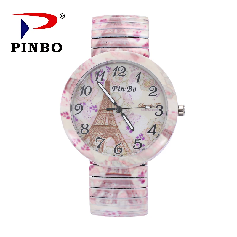 PINBO фирменные модные винтажные креативные эластичные часы с Парижской башней, повседневные женские кварцевые часы с браслетом, подарок для женщин