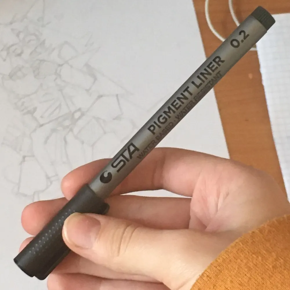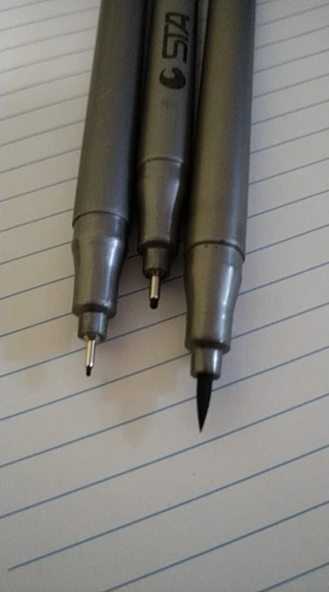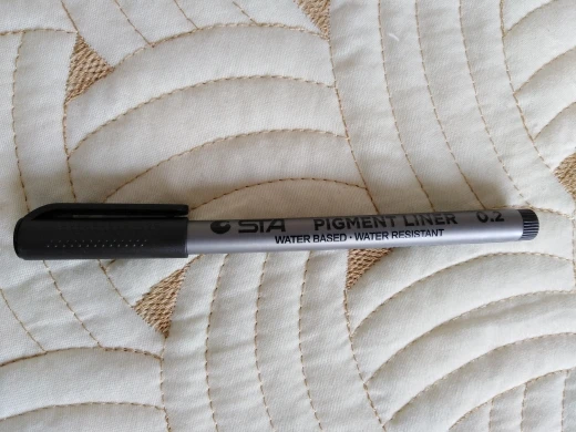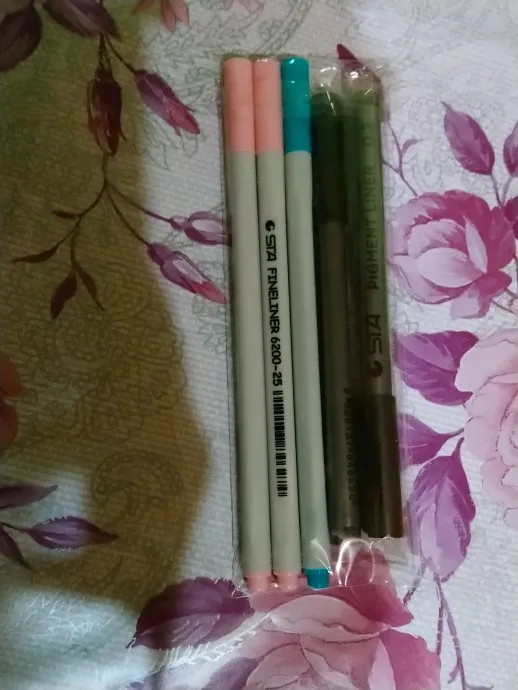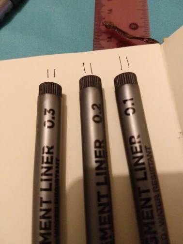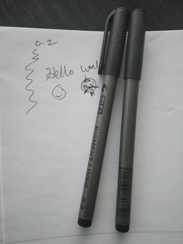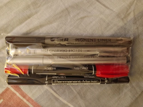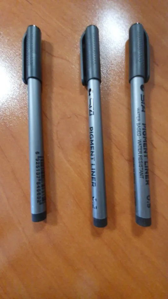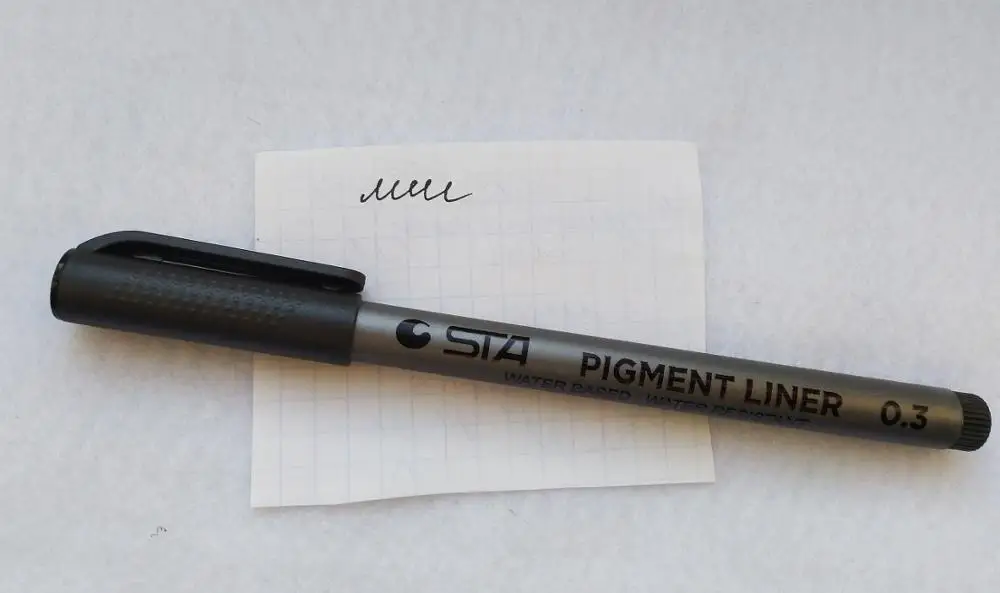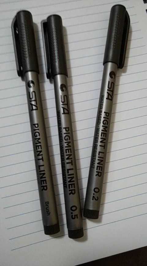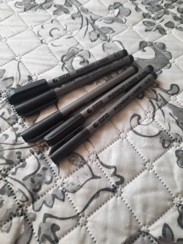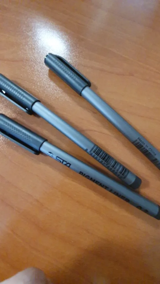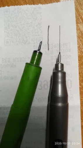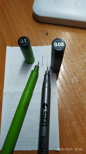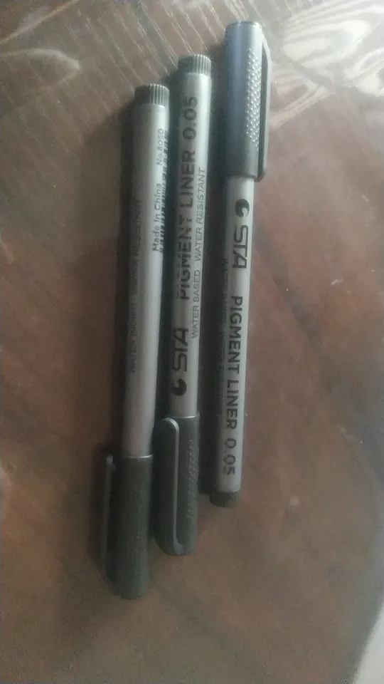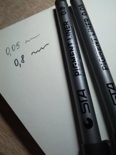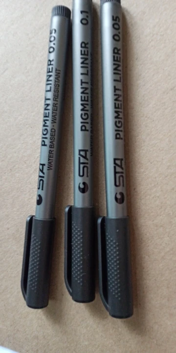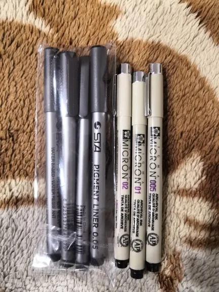 Три линера положили в одну упаковку,что приятно. Товар дошел за 2 недели до СПб. Про линер. Сравнивала 3 линера 0.05 : micron.STA и Needl Drawing. Самая толста линия у Micron. Самай тонка у Needl. За счет толщины Micron выглядет более глубоким черным цветом. Писать и рисовать удобно всеми. Но если нужна тонкая линия совсем,то конечно Needl.