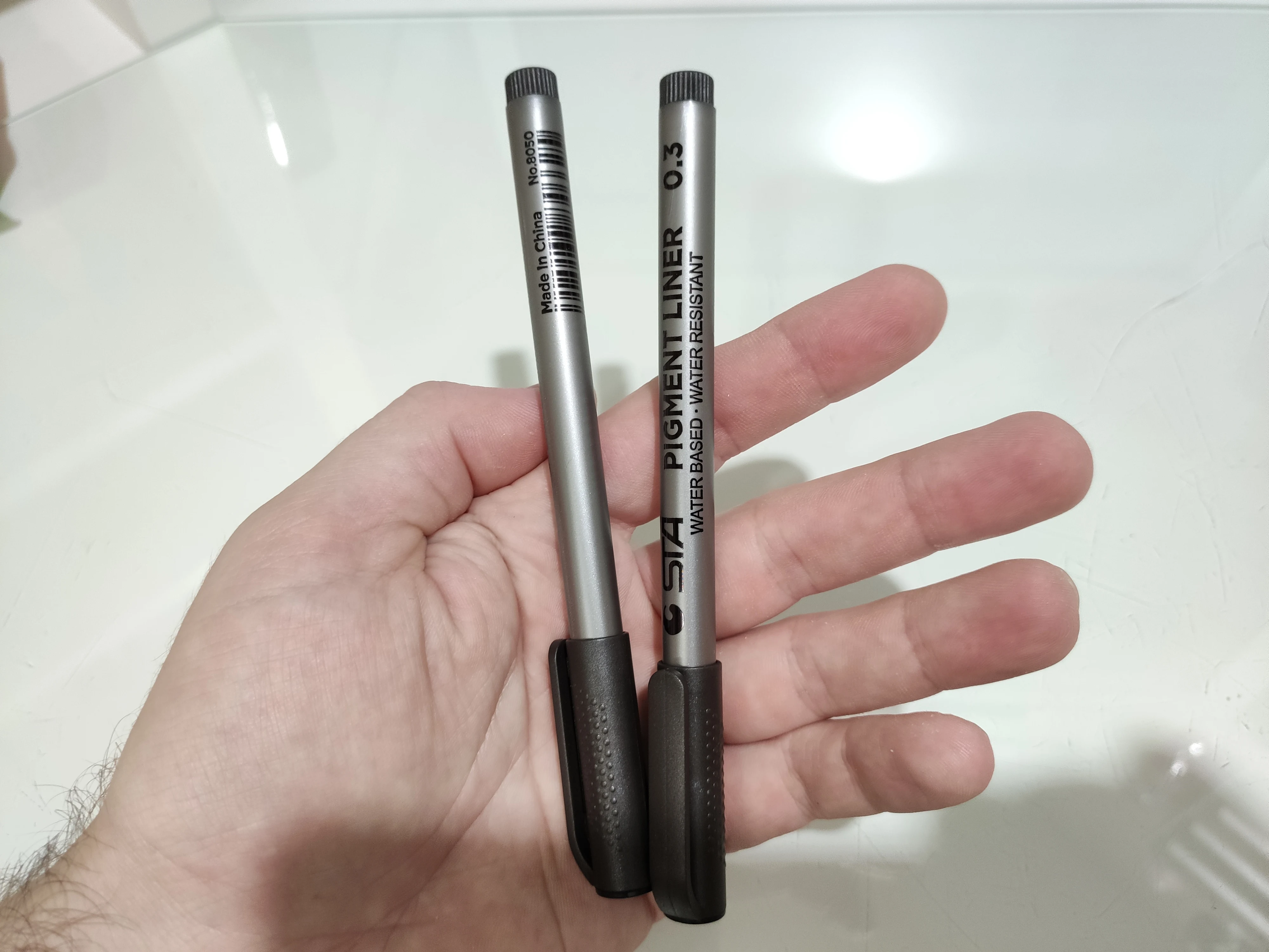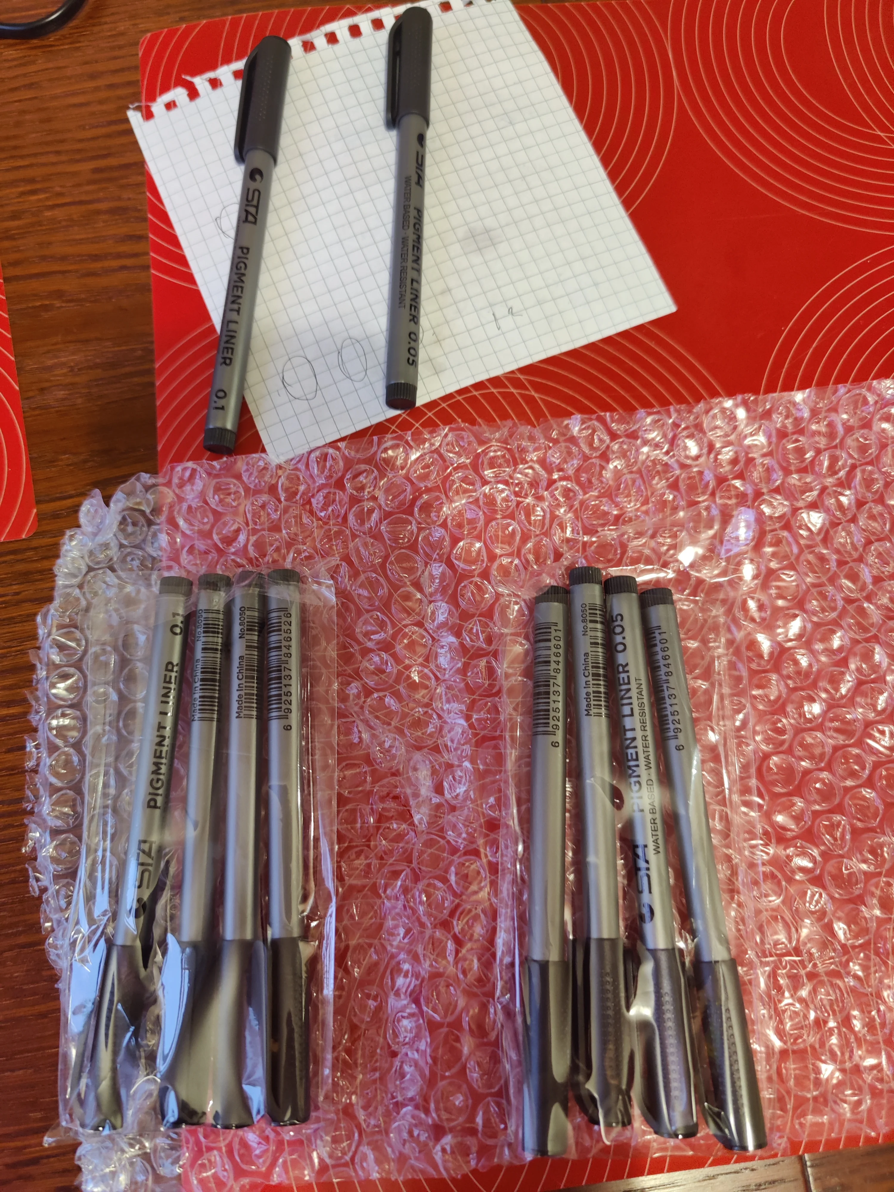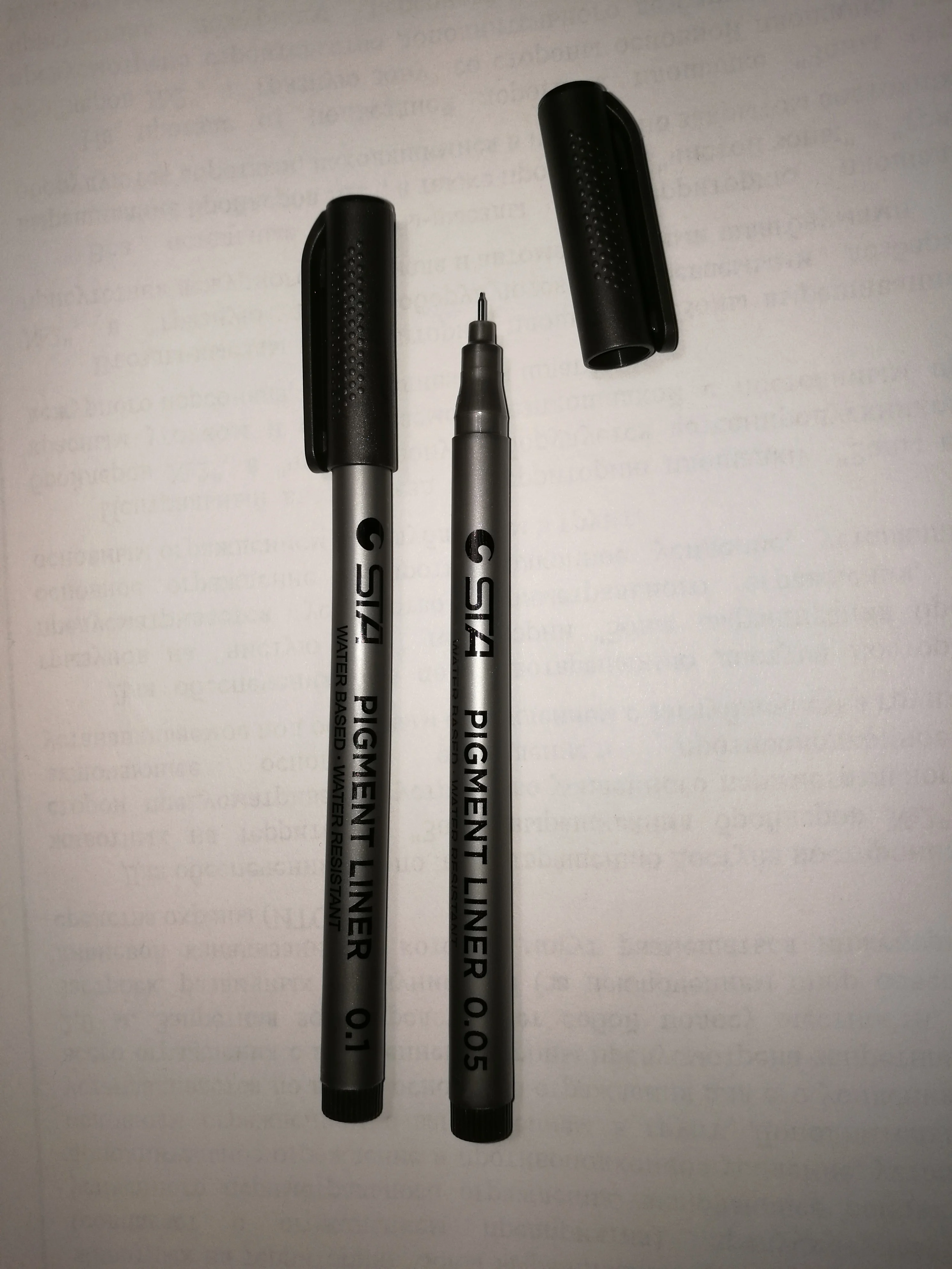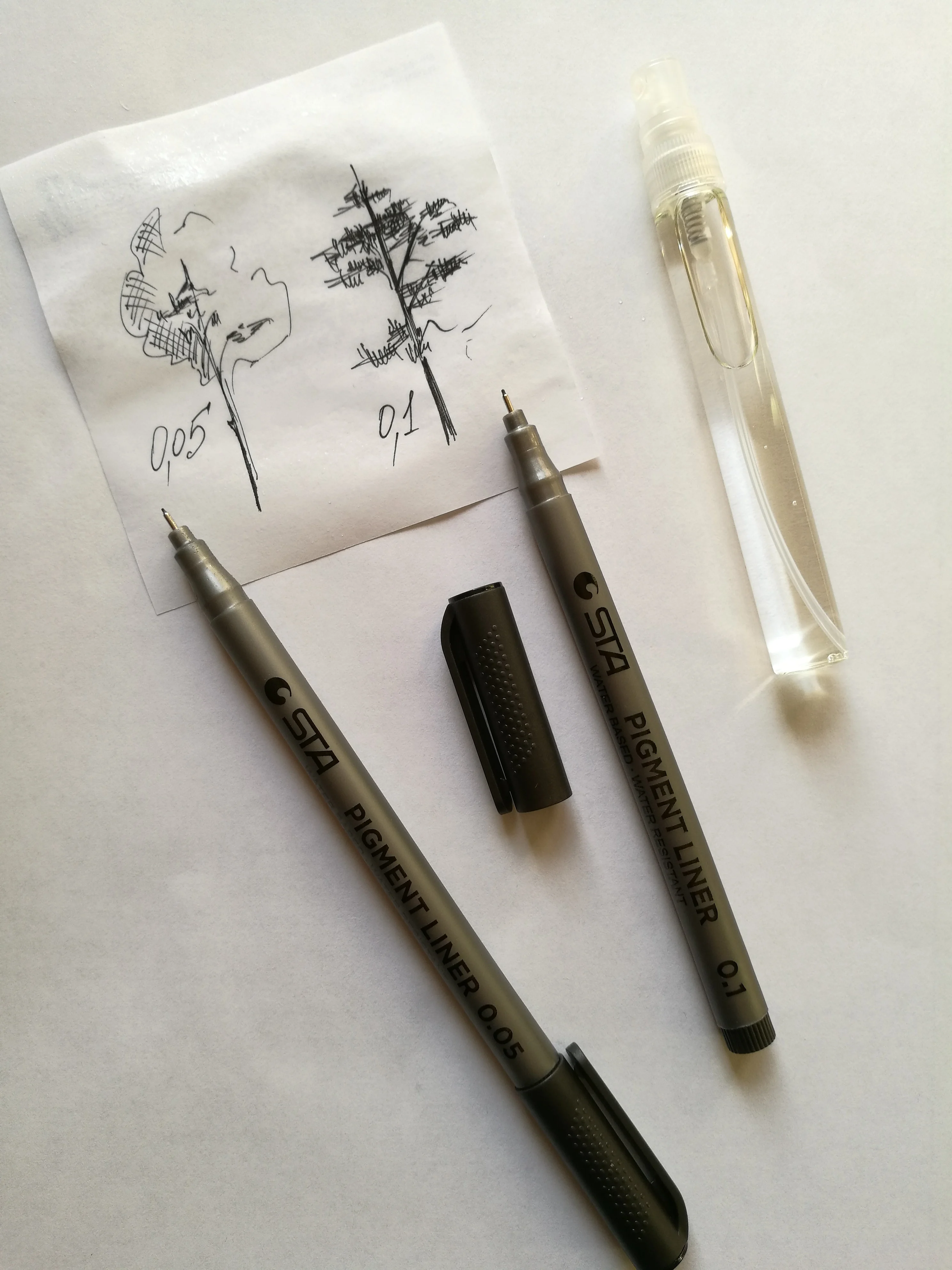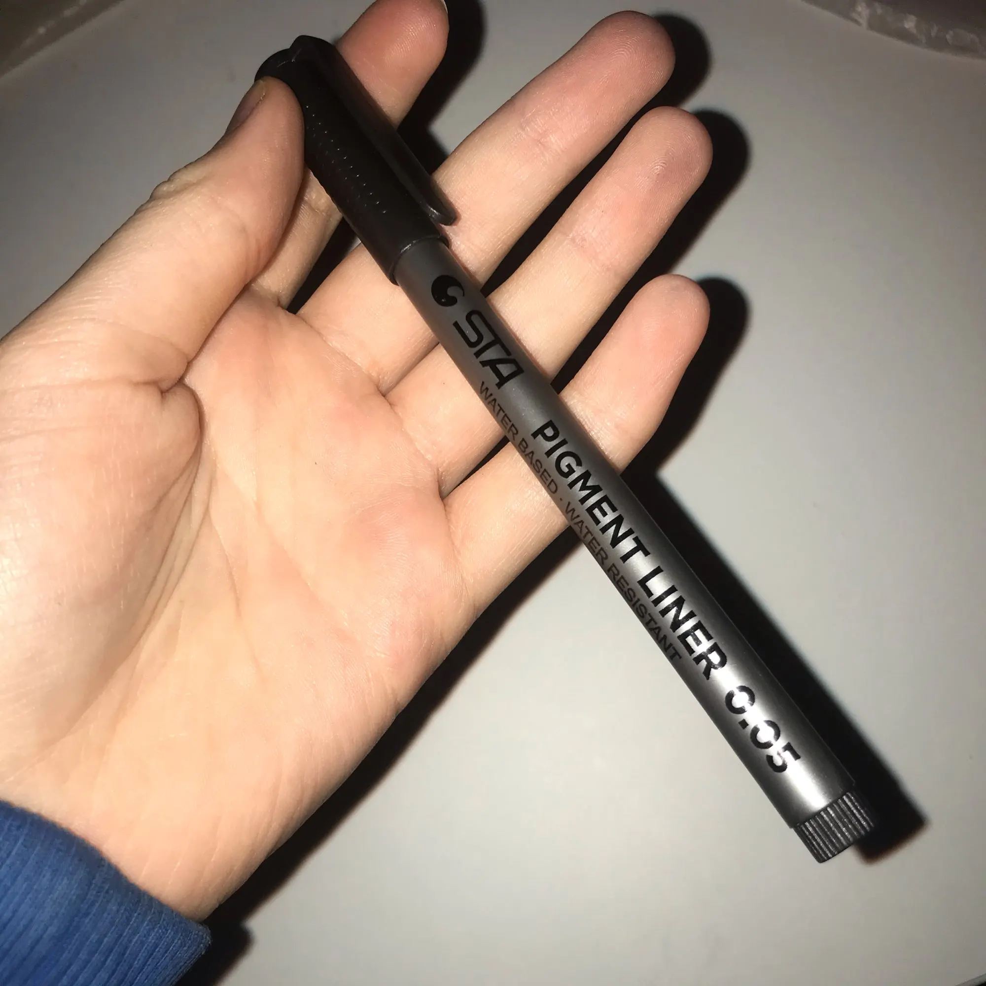 Три линера положили в одну упаковку,что приятно. Товар дошел за 2 недели до СПб. Про линер. Сравнивала 3 линера 0.05 : micron.STA и Needl Drawing. Самая толста линия у Micron. Самай тонка у Needl. За счет толщины Micron выглядет более глубоким черным цветом. Писать и рисовать удобно всеми. Но если нужна тонкая линия совсем,то конечно Needl.