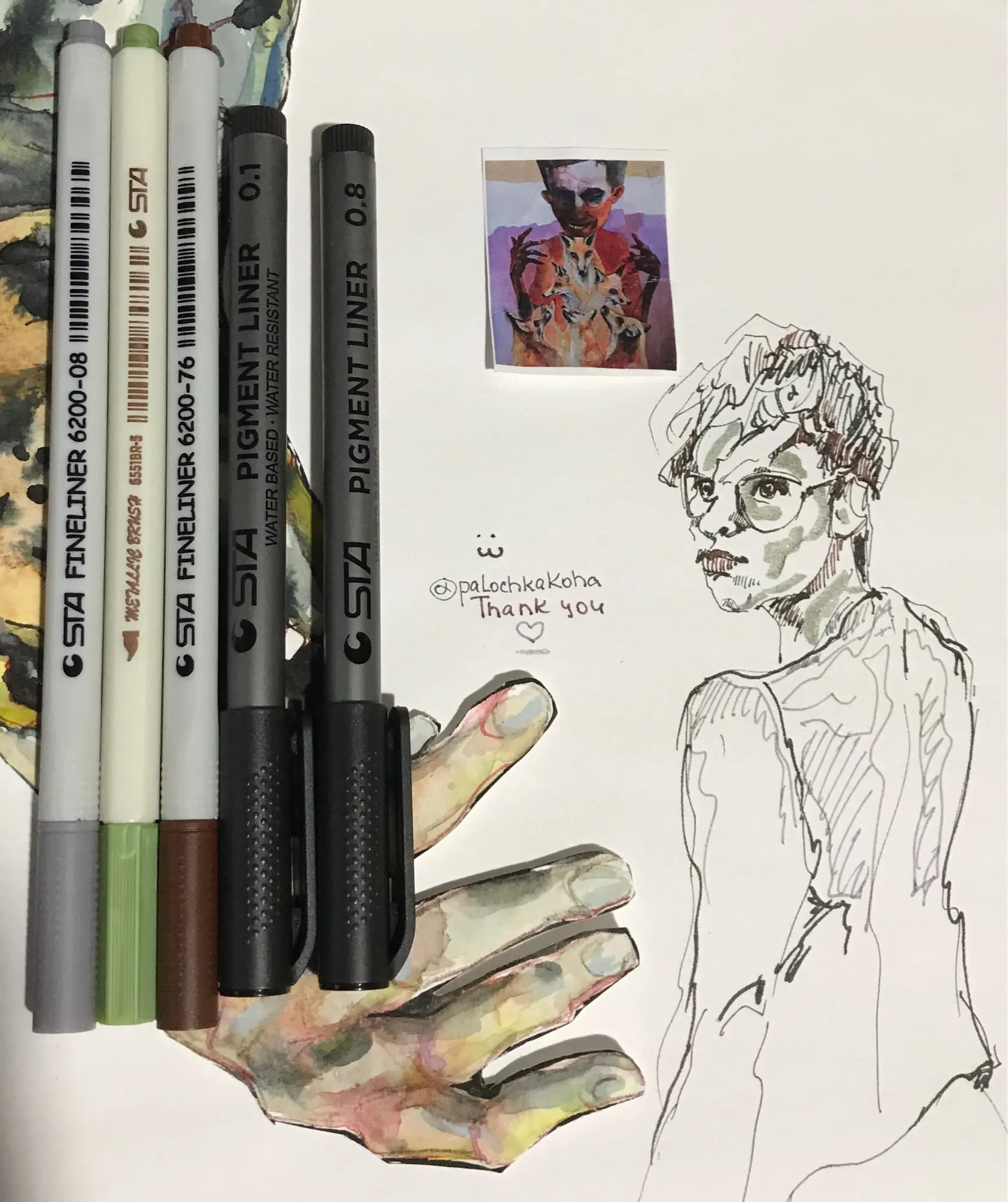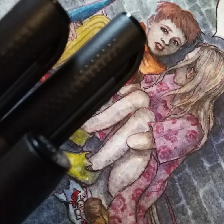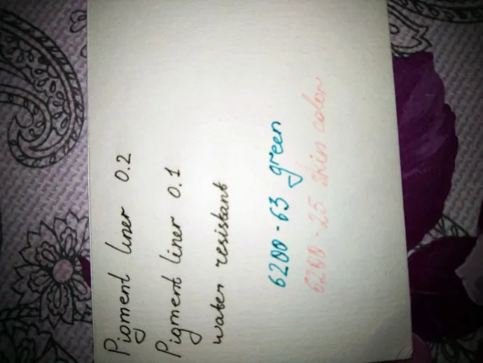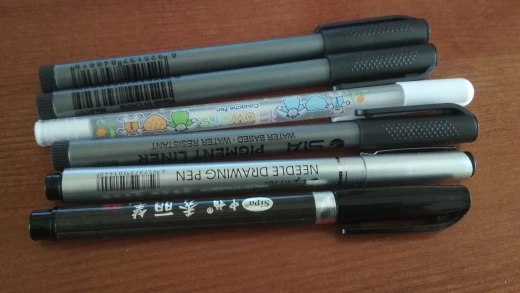 Привет. Взяла несколько лайнеров, цветные в том числе, я, деревня, честно говоря, имею дело с таким впервые, если что пользовалась в творчестве пером либо гелевой ручкой. В наброске использованы все ручки, что я купила. Я довольна ^^ P. S. Самое сильное впечатление произвела металик браш, жаль одну взяла, потому что покупала все с купоном за смешные деньги.