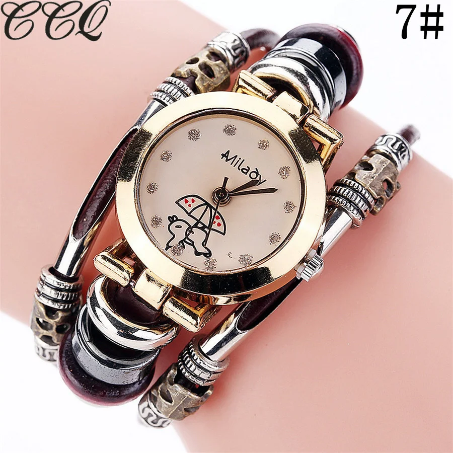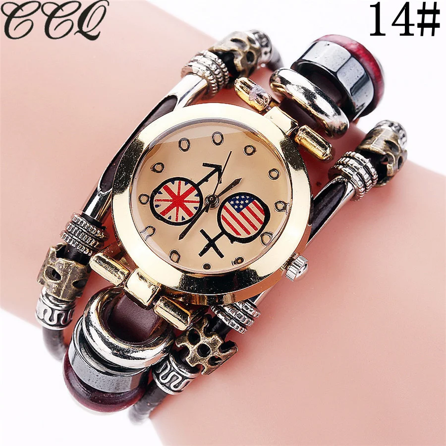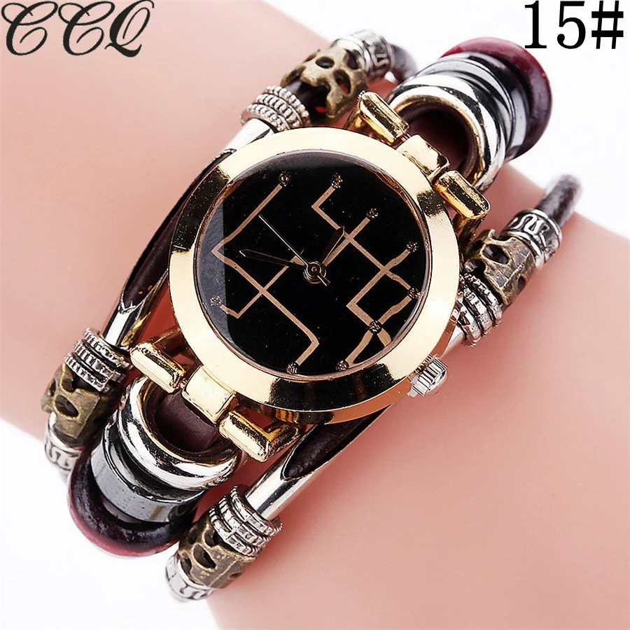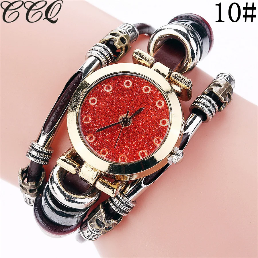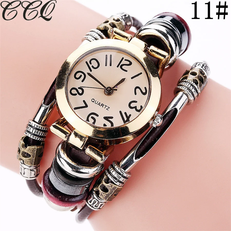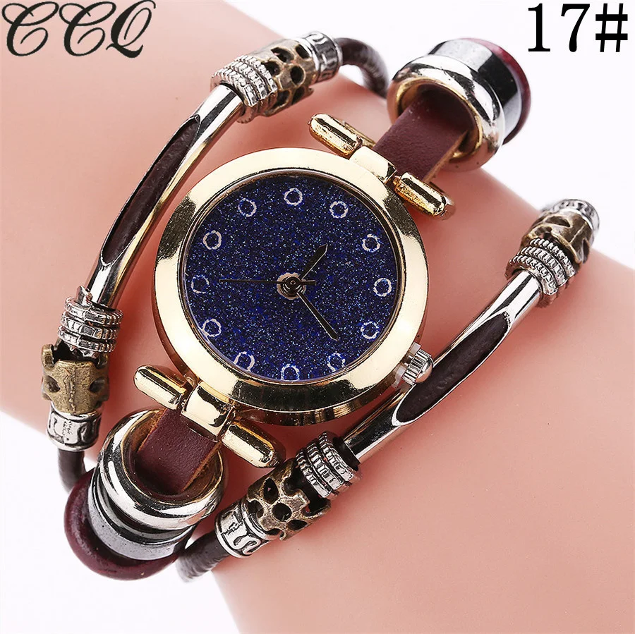 CCQ брендовые Модные Винтажные часы с кожаным ремешком, повседневные женские кварцевые часы со стразами, женские часы, Прямая поставка