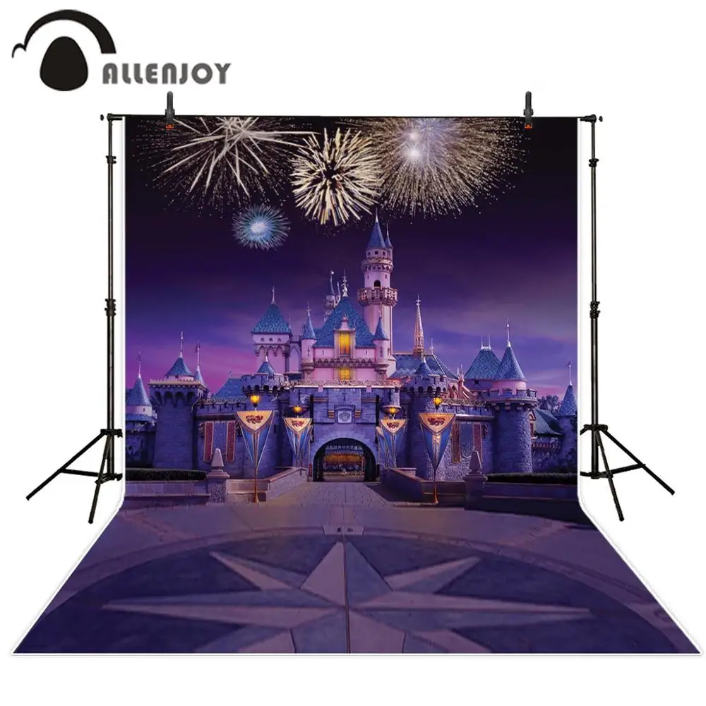 Фоны Allenjoy с замком ночной фейерверк Красивая Волшебная принцесса день рождения селфи фотография баннер фотобудка занавеска