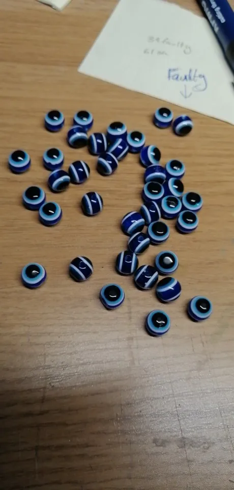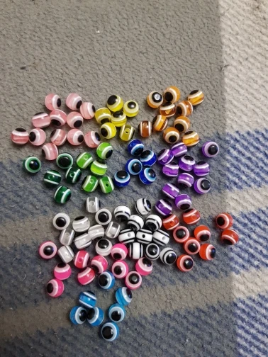 Большинство бусин соответствует описанию и их 100. Однако из 100, 39% неисправны с царапинами или деформацией (и это я закрываю глаза на некоторые дефекты). Я искренне уверен, что производитель должен зарядить больше и иметь лучшее качество продукции. Что я могу сделать с таким количеством неисправных? Честно говоря, это не стоит двух месяцев ожидания, и я не буду покупать снова. Вы можете найти это нормально, но это зависит от вас.