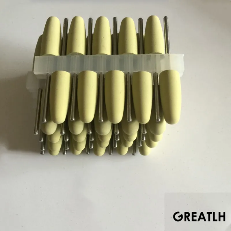 50 шт., стоматологическая силиконовая резина, полировальные принадлежности, алмазная полировка, 2,35 мм, желтая