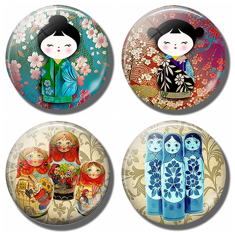Цветок сливы Kokeshi 30 мм магнит на холодильник японская кукла стеклянный держатель для банкнот домашний декор