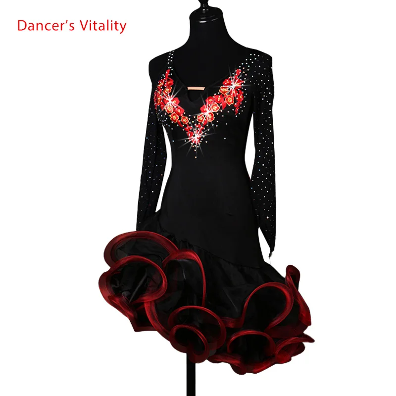 Женское платье для латиноамериканского танца, сексуальное платье с вышивкой и длинным рукавом для девушек, платье для латиноамериканского танца ча-ча