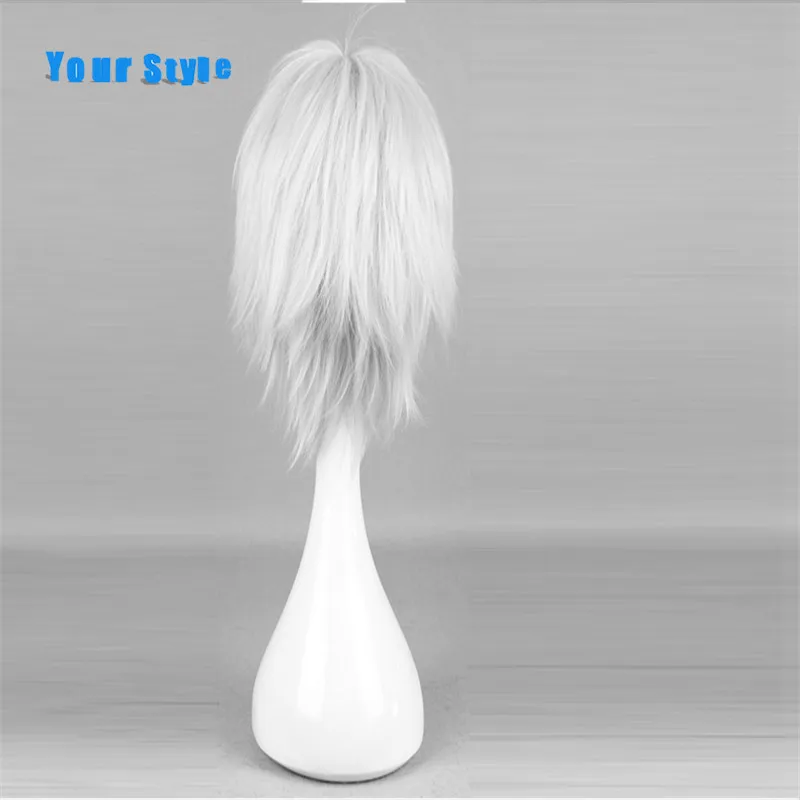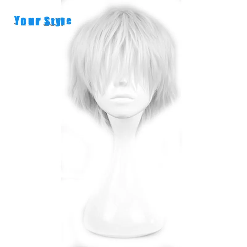 Мужские короткие кудрявые волосы в твоем стиле, серебристо-серые парики для косплея для вечеринки, костюма, натуральные волосы из синтетического высокотемпературного волокна