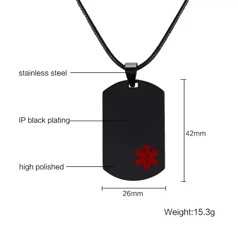 Vnox Black Medical Alert ID унисекс подвес, ожерелье, ювелирные изд...