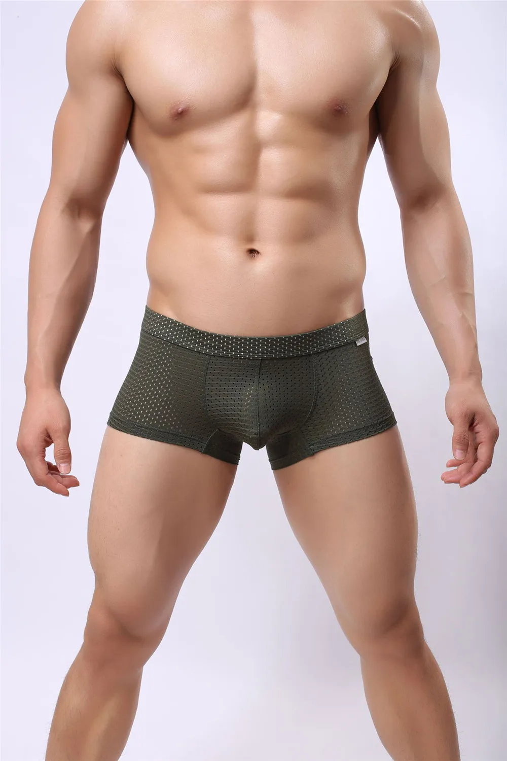 Мужские трусы боксеры из сетчатой ткани BRAVE PERSON, черные дышащие однотонные боксеры с U-образным выпуклым мешочком, сексуальное нижнее белье для мужчин, гей-трусы 2019