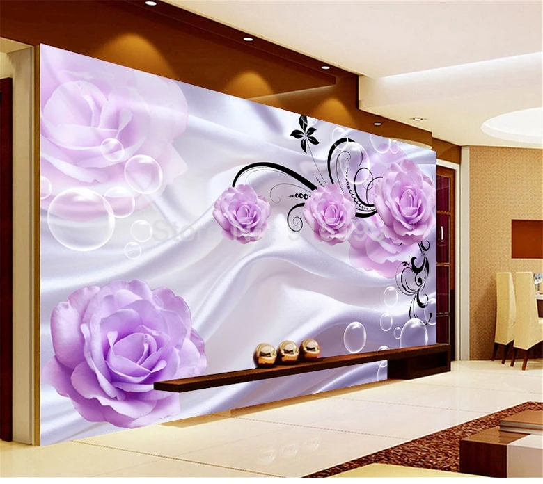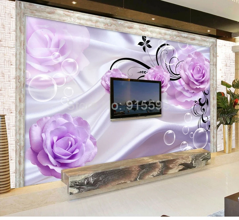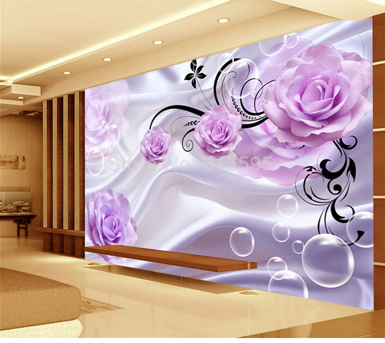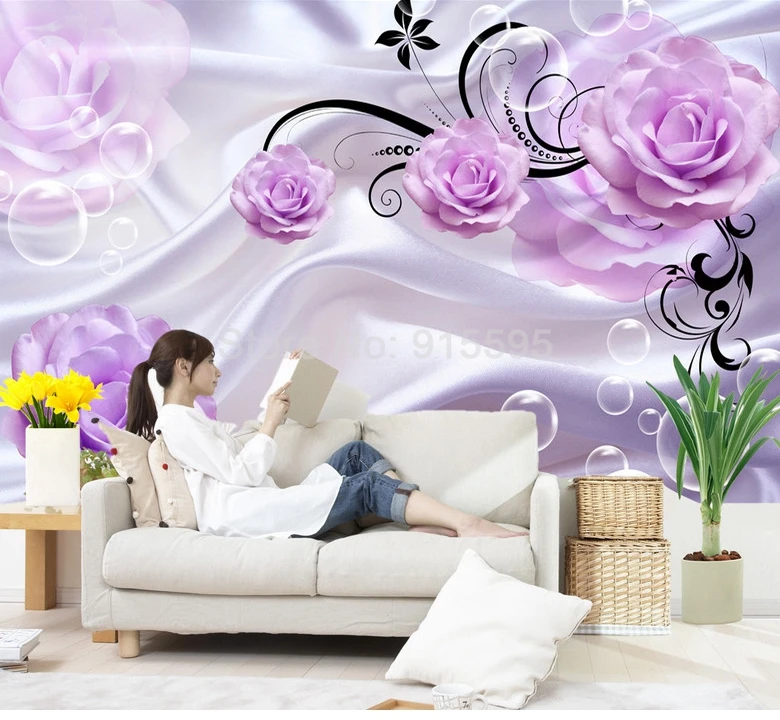 Фотообои на заказ, 3D, цветочные, фиолетовые розы, Шелковый фон, современные, простые, романтичные, для гостиной, спальни, Настенные обои