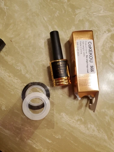 Мой последний топ. 2 недели без царапин, без аллергии. Продавец всегда кладет некоторые подарки в пакет. Я настоятельно рекомендую этот товар. Этот верхний слой не имеет липкого слоя, но имеет уф-защиту (я предполагаю, потому что он светится в лампе)