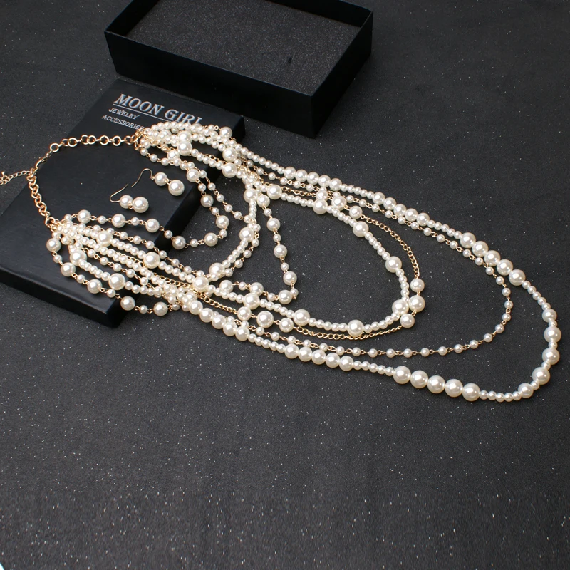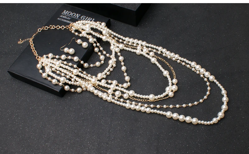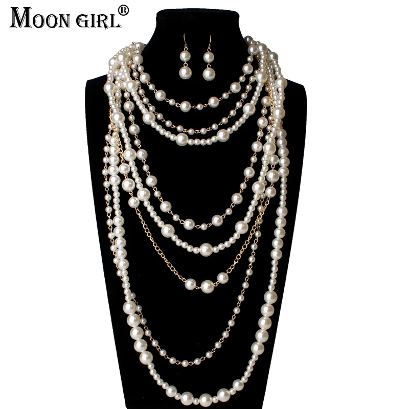Женское многослойное ожерелье MOON GIRL, длинное ожерелье с подвеской из искусственного жемчуга, модное Ювелирное Украшение, 2017