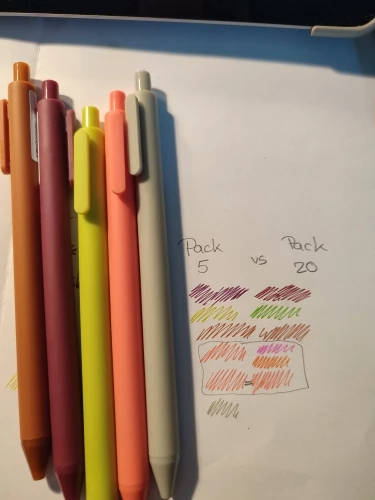 Как описано, все ручки пишут плавно и с легкостью, никаких царапин или чего-либо другого, чтобы получить их, продукт прибыл быстрее, чем ожидалось.