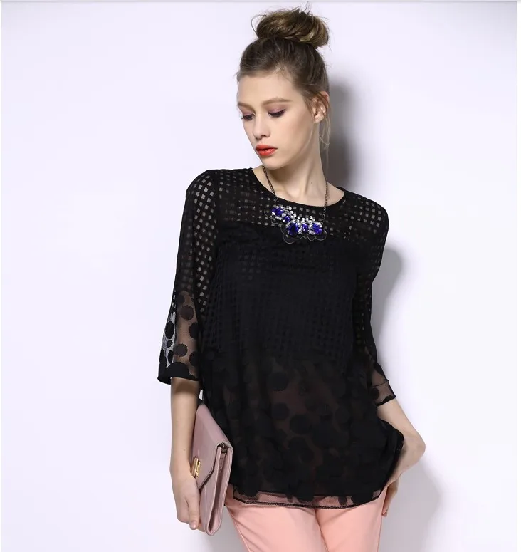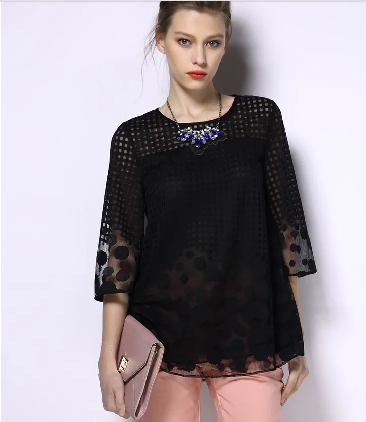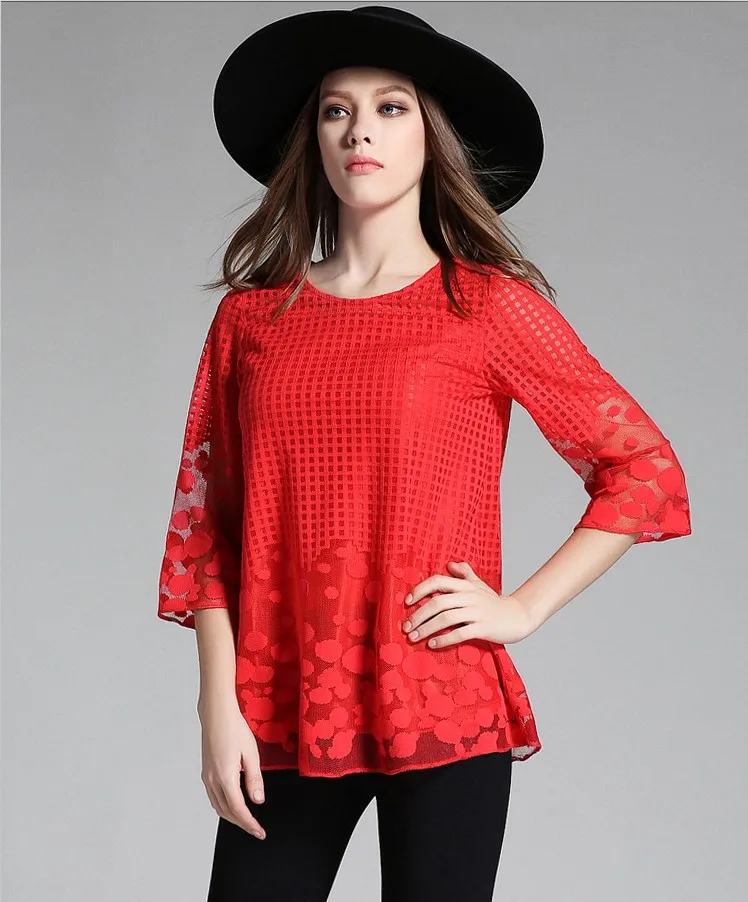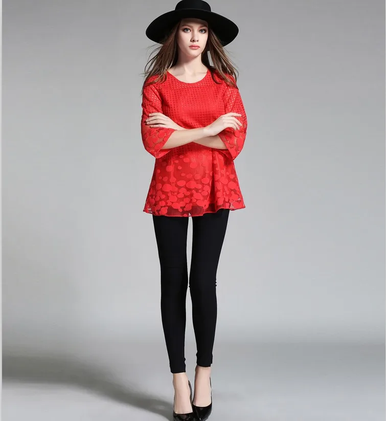 рубашка плюс размер добавить удобрение женская рубашка с рюшами M-5XL 2019 летние новые женские кружевные рубашки черные красные блузки с вышивкой 880A