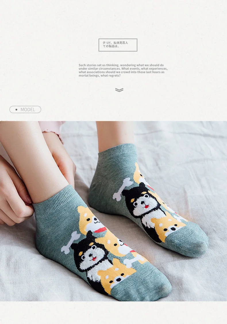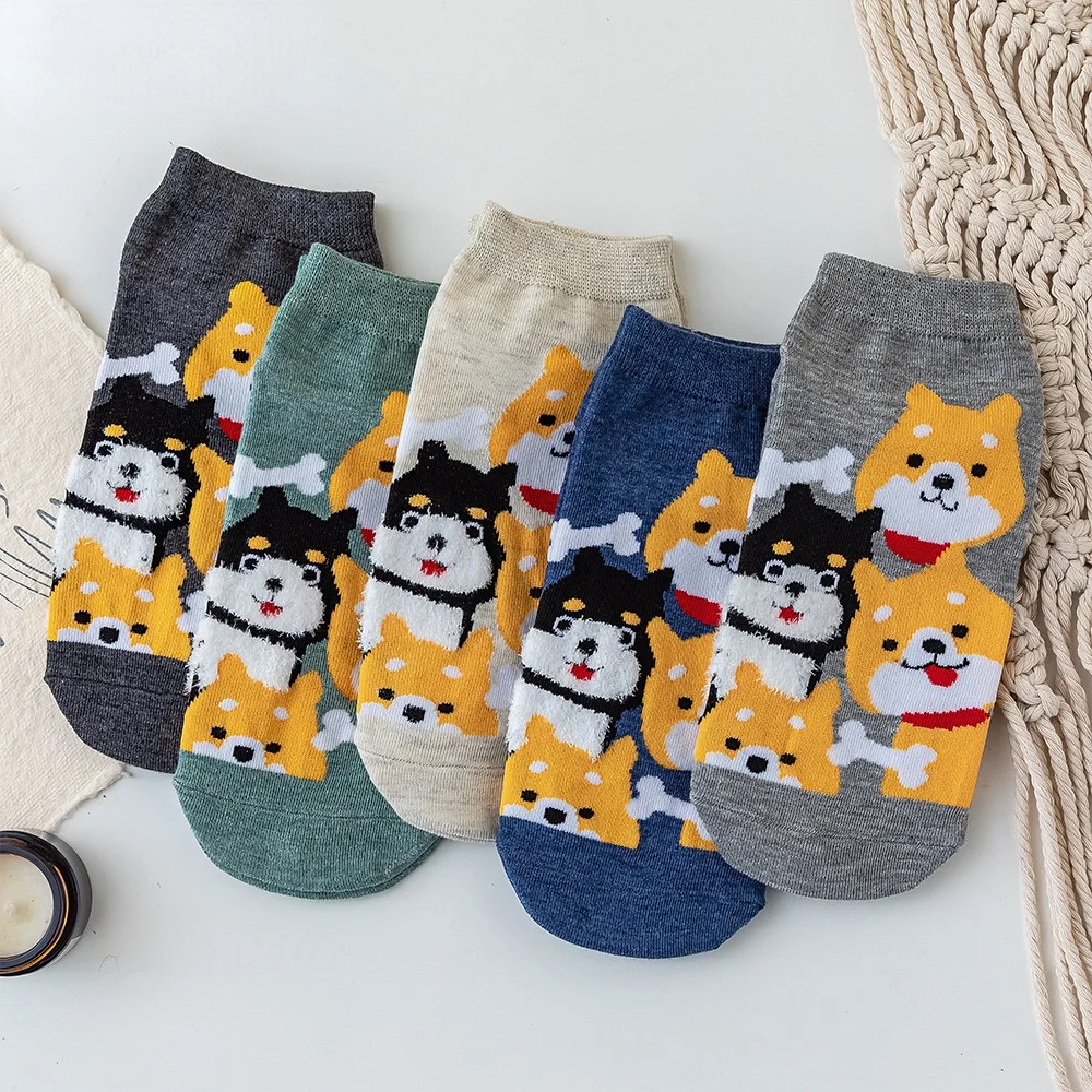 SP CITY5 пар женских носков с милыми собачками и животными модные летние хлопковые носки-башмачки женские мягкие дышащие тонкие низкие носки с кроликом