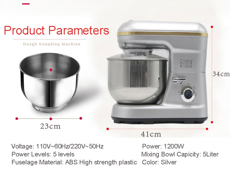 Миксер Электрический из нержавеющей стали, 5 литров, 110 В, 220 В