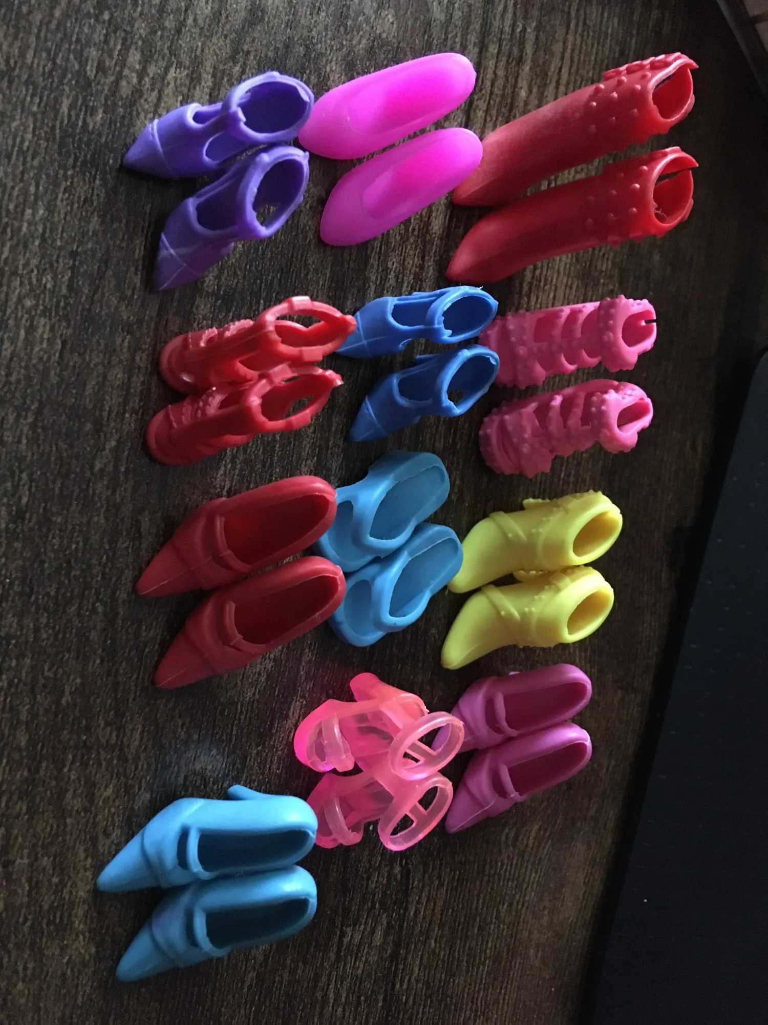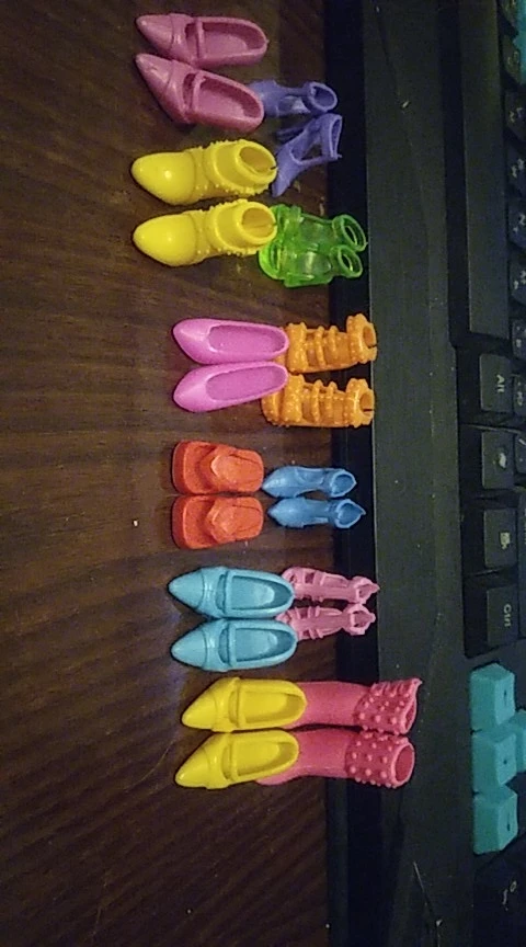 Туфли не все налезли на нашу куклу. Одна пара сразу порвалась. Из того что получили, подошло 6 пар обуви, остальные на очень маленькую ножку куклы. Цвета не такие как на картинке сайта, но модели обуви те что представлены.
