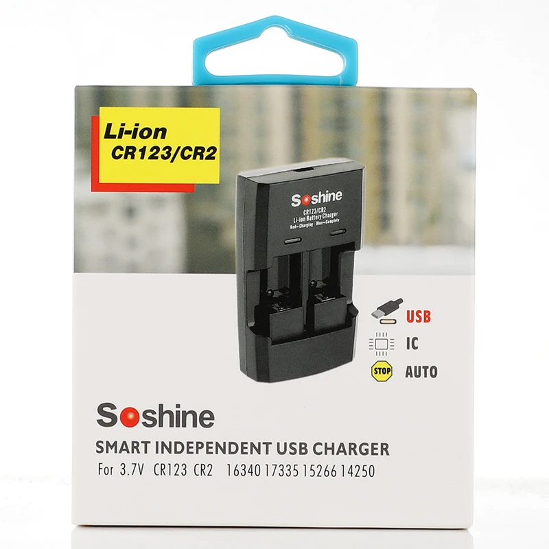 Быстрое зарядное устройство Soshine для литиевой батареи CR123 CR2 16340 17335 14250